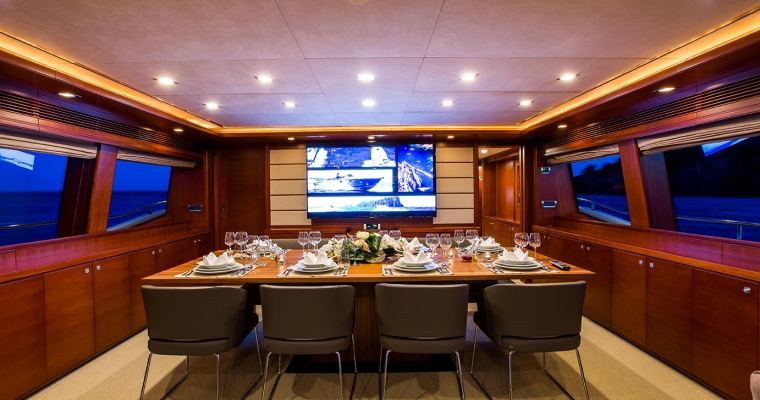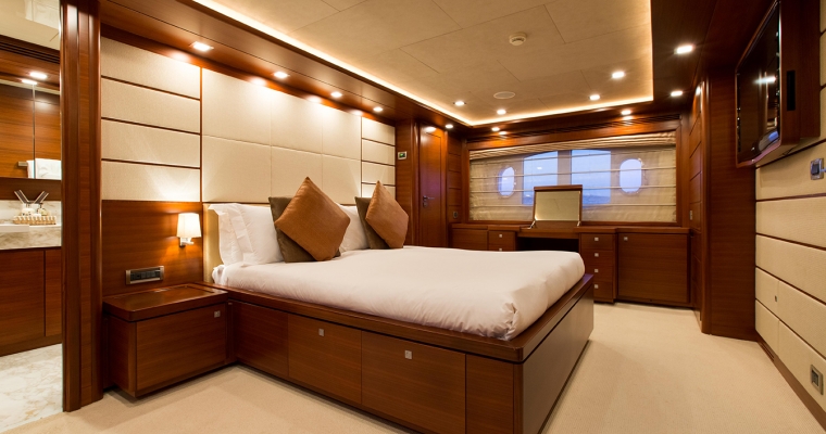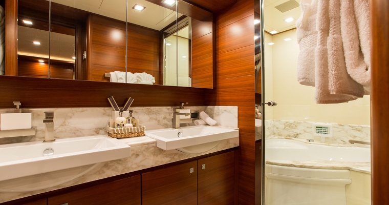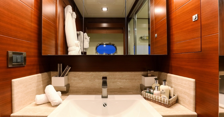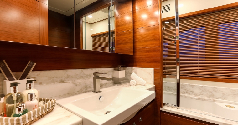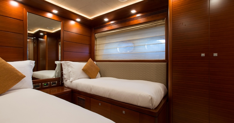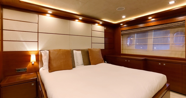 Offering 5 guest cabins for comfortably 10 guests, the Master stateroom is featured on the main deck. Lower deck; 1 x VIP stateroom, 1 x double stateroom, 2 x twin cabins with Pullman berths (twin on port side can be converted to a double). Pullman berths to take up to a small/medium adult.