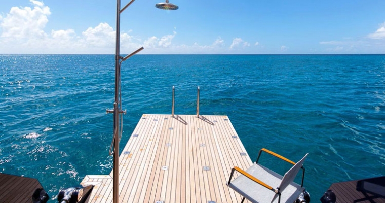 Tenders & Toys: Pascoe 5.5m with Inboard Yanmar 150hp RIB. Full range of inflatables for children (including donuts and wing) Water skis (adult & childrens) Wakeboards Fishing chair and full deep sea fishing equipment (including fighting chair, multiple rod, reels and tackle for everything from minnow\\\'s to sail fish) Snorkeling gear 2x Foldable mountain bikes (GIANT) 1x Tiwal inflatable sailing yacht 2x stand-up paddleboards 2x sea kayak canoes 2x seabobs Floating Swimming Pool 1 x Lampuga electric surfboard (30mph) Professional Shiatsu massage bed (THERASAGE) Hammam Turkish steam bath Audio Visual Equipment and Deck Facilities: Spacious cockpit and ample lounge area with various options and adaptable tables (Coffee table or dining tables) Forward sun loungers Sat TV Bow seat for two Communications: 2 x Fleet broadband Seamless voice and broadband. World coverage - 3G router - Wifi coverage throughout + GSM 1mb VSAT internet connection. (Increased in speed if required at competitive prices)