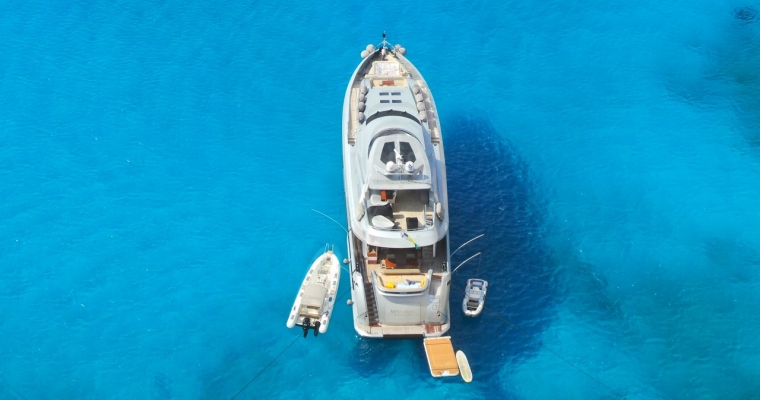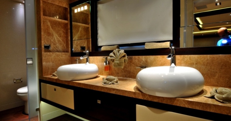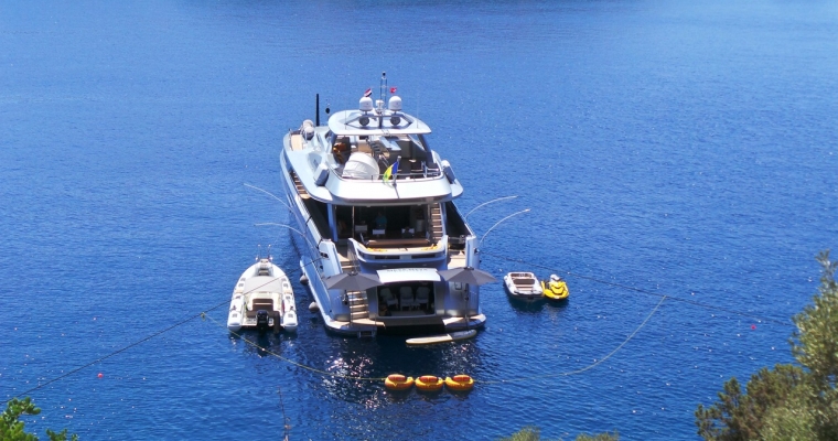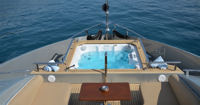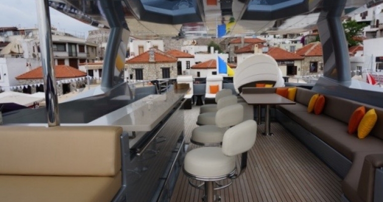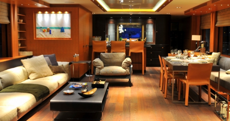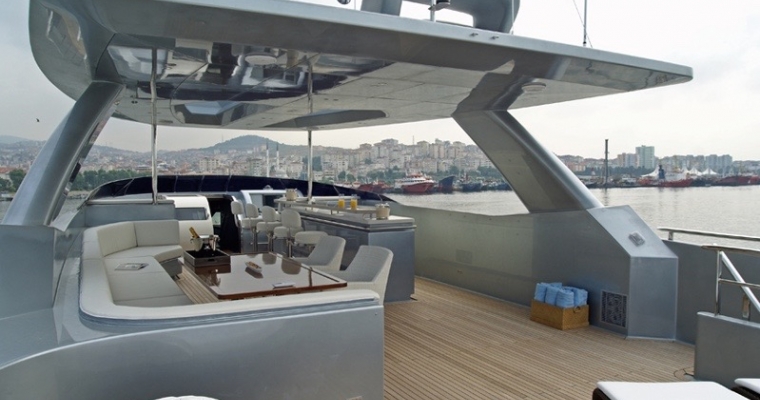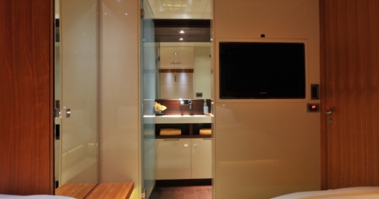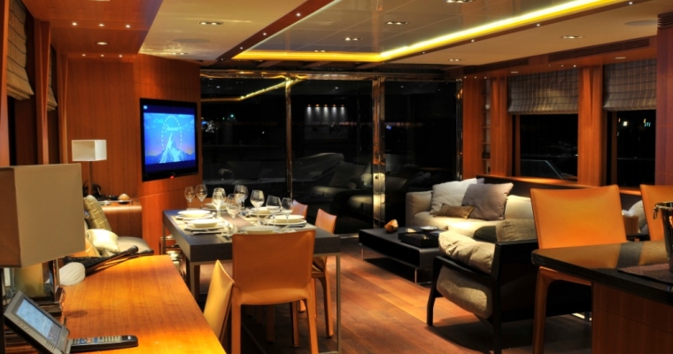 Audio Visual Equipment and Deck Facilities: - Fully integrated AV system (AMX) activate all the lighting, media, curtains that are controlled by both AMX pads and iPads from all areas of the yacht. - Wifi network - Hydraulic swim platform that lowers into the water - Hydraulic swim ladder - Deck jacuzzi with hot/cold water - Gym equipment - Numerous water-sport equipment - Large 8.5m towable tender - 2 wet bars - Electric sun awnings for the aft deck seat area