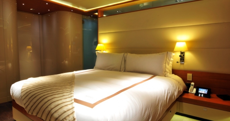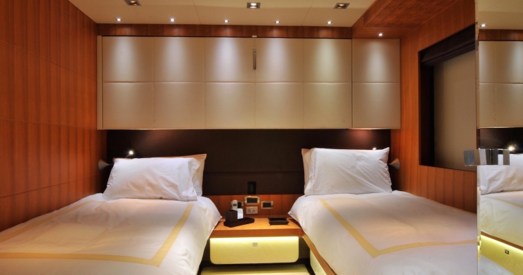 Maximum number of guests allowed sleeping - 12 guest in 5 guest cabins: 2 master cabins, 1 VIP, 1 double with single pullman, 1 twin with single pullman. Pullmans are of normal single bed size.
