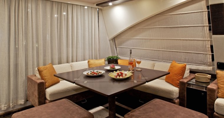 One Master cabin with queen size bed. One VIP cabin with queen size bed. One cabin with semi-double bed. One cabin with twin beds. All cabins have en suite private facilities.