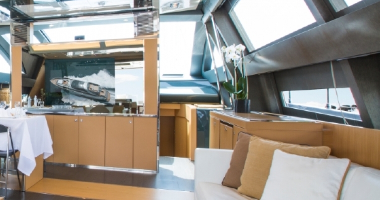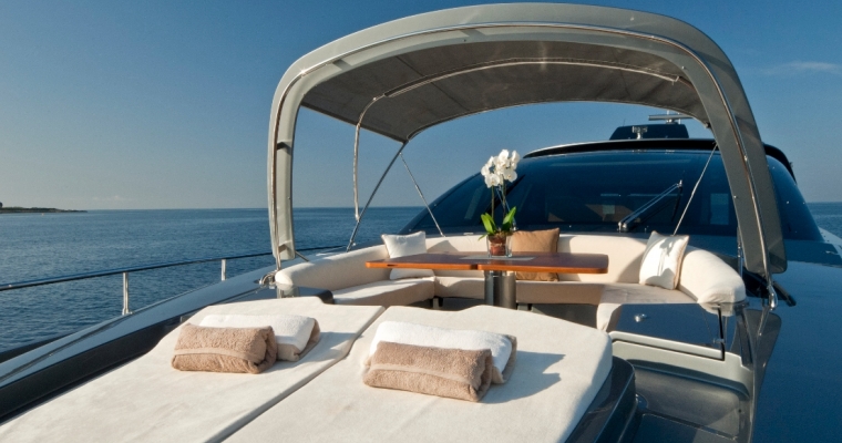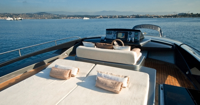 RHINO a is a striking Riva 86’ Domino in perfect condition. She offers contemporary lines with a sporty influence to its minimalist style whilst delivering the luxury expected of this stunning sports cruiser. The aft deck offers a relaxed sunbathing/seating area, in addition to an alfresco dining area for up to 8. The superb design continues with a retractable glass window that opens the space between the aft deck and saloon. The foredeck also features a second more intimate dining area for up to 6 as well as further sunpads with a Bimini cover offering extra privacy for the guests. The Flybridge offers more sun pads for the sun lovers to soak up the rays and the stunning views. The interior offers a large volume over two decks and has been designed to maximise the various areas of the yacht. With a fresh cream and grey interior décor complimented with light wooden furnishings throughout she really is a stunning yacht. The fabulous full beam Master stateroom with ensuite sit down shower and double sink unit is exceptionally bright with windows running either side. In addition there is a vanity until and a lounge area. Amidships are the two guests’ cabins, an adjustable double/twin, and the twin cabin, forward brings us to the VIP cabin, all offering ensuite luxury facilities. With its fabulous interiors and sleek exterior Rhino a is ideal for racing around the Riviera in absolute Style and luxury!