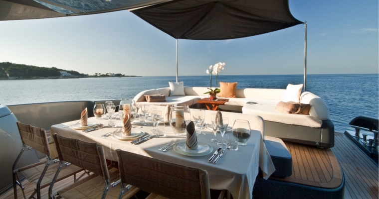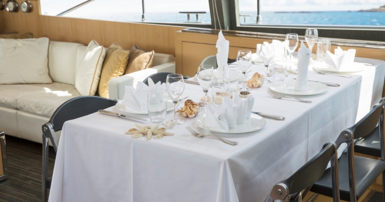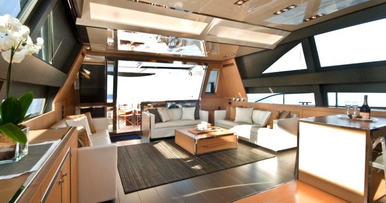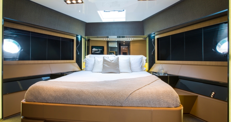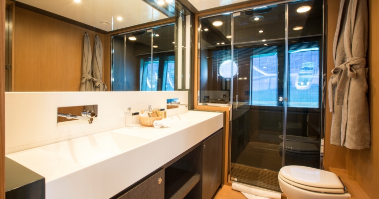 The yacht accommodates a total of 8 guests in 4 cabins. Full beam Master stateroom with large seating area, vanity unit, walk-in wardrobe with small cabinet, electronic safe and shelves. Very Spacious ensuite shower room with double sinks and walk in, sit down shower. Full beam VIP cabin, with ensuite shower room, single sink unit and sit down shower. Double/twin guest cabin, large double bed and convert to 2 singles - ensuite shower room with single sink unit. Twin bunk cabin with 2 single beds - ensuite shower room with double access as this can also be used as the day head. Shower with sit down seat.