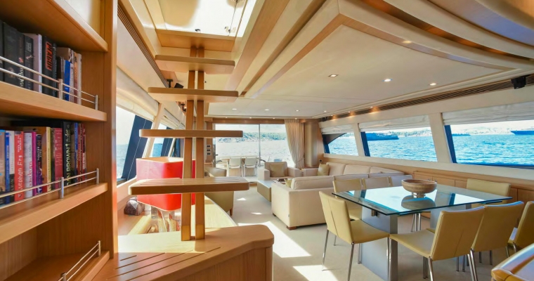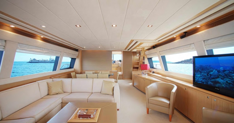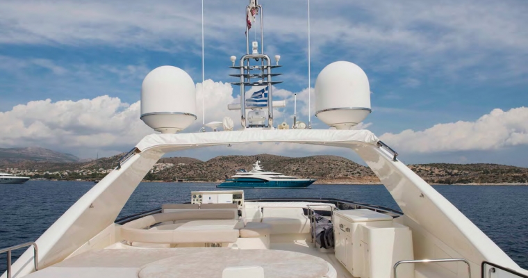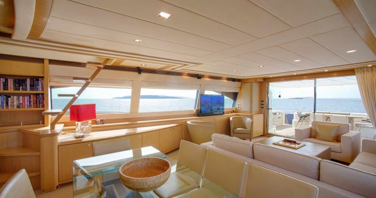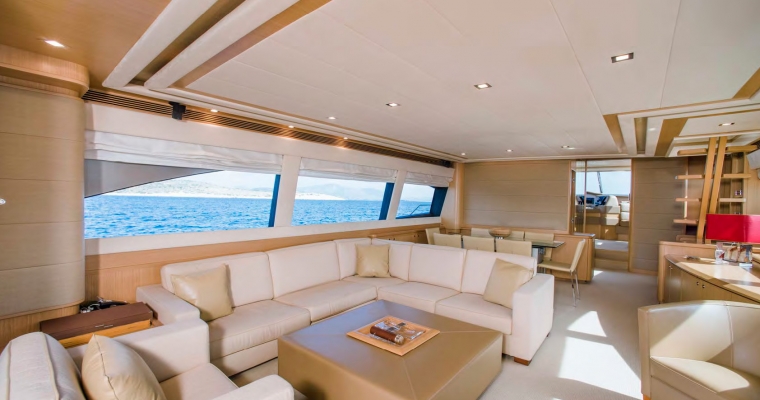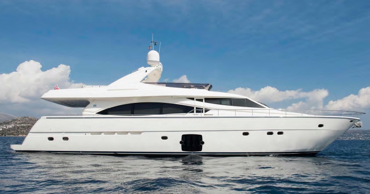Julie M is a 25.3 m / 83′1″ luxury motor yacht. She was built by Ferretti in 2008. With a beam of 6.25 m and a draft of 1.86 m, she has a GRP hull and GRP superstructure. She is powered by MTU engines of 2030 hp each giving her a maximum speed of 32 knots and a cruising speed of 27 knots. The motor yacht can accommodate 8 guests in 4 cabins.