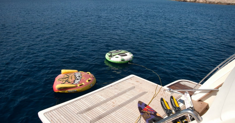 Tenders & Toys: Tender Williams 445 2 seabobs Kitesurf Rings Complet scuba diving equipment Waterskis Audio Visual Equipment and Deck Facilities: Playstation Satellite TV in all cabins Full high definition TV\\\'s in all cabins Ultra high definition 4K 48\\\'\\\' TV in salon Bose sound system Apple TV VIP & guest cabin MP3 sound system