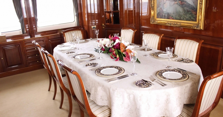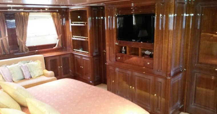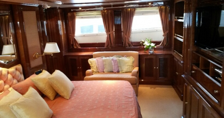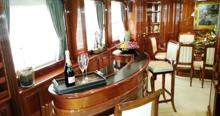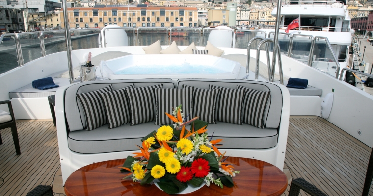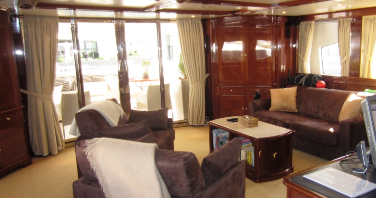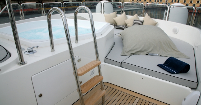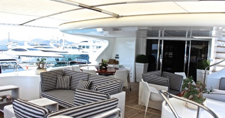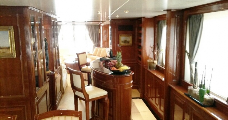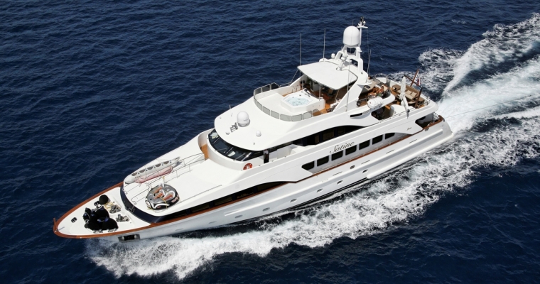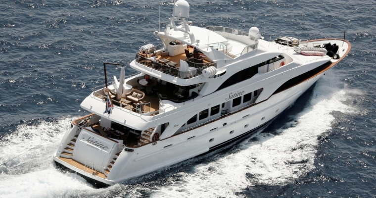 Beautiful Benetti Classic configured as the perfect charter yacht. SATINE offers comfort, style and lots of space on 3 decks for up to 8 charter guests. SATINE captures timeless Benetti styling, while packing the amenities of a 40m yacht into that of a 35m. The flybridge offers a large Jacuzzi surrounded by a spacious sun lounging area, a bar and an alfresco dining option, the ideal area to enjoy drinks whilst sunbathing. A rare find for yachts in this size range is the relaxing sky lounge, featuring a second bar and day head on the upper deck. The main deck offers a large saloon and dining room, separated by a bar for entertaining. SATINE“s interior is illuminated by large windows throughout, creating an airy atmosphere. The full beam master cabin is located on the main deck. The full beam VIP cabin and two twin bed cabins are situated on the lower deck. Furthermore the starboard twin bed cabin features a pullman bed for a child. SATINE is built for long-range cruising, with 3300nm range, and has a low fuel consumption for economic cruising. Stabilizers ensure relaxed cruising and smooth anchoring at all times. The yacht features a broad range of water toys and is RYA registered as PYC Training center. Captain Igor and the long standing crew will transform every charter into an unforgettable experience.