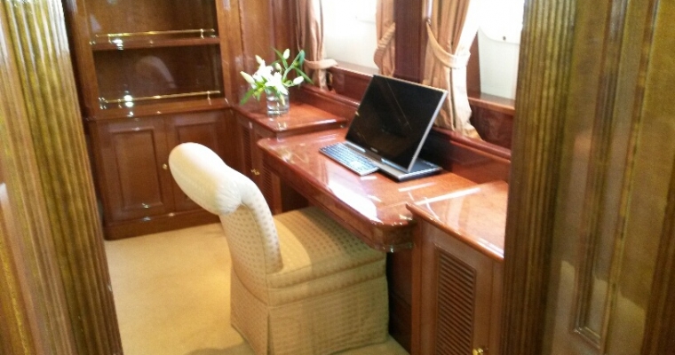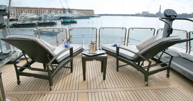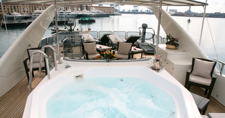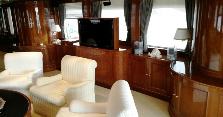 Tenders & Toys: Tenders: - Zodiac N-zo 7.00m with Yamaha outbarod engine 350 hp - Novurania 4.30m with a Yamaha outboard engine 115 hp Toys: - Sea Doo Jet ski with 260 hp - fly fish, donuts, buoys and water skis - 2 Seabobs, model F5 (new 2017) Gym equipment: 2 x Technogym running machines on the sun deck, one is cross forma and the other is running forma. Approved RYA water sports center for summer 2017. Audio Visual Equipment and Deck Facilities: Master & VIP cabin are equipped with Samsung LED TV 32 inch. Languages: English, Italian, French) CD players with Bose sound system all over the boat. Upper saloon is equipped with X-box and Samsung LED TV, 102 cm. CD library Mac mini computer which is connected to the Samsung LED TV in the VIP cabin. Satellite receiver Communications: Wi-fi