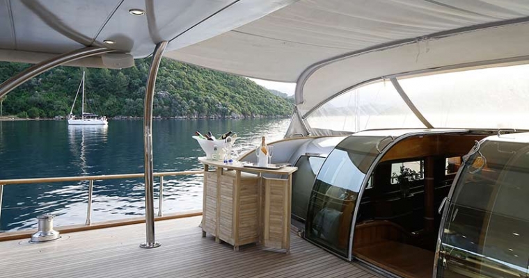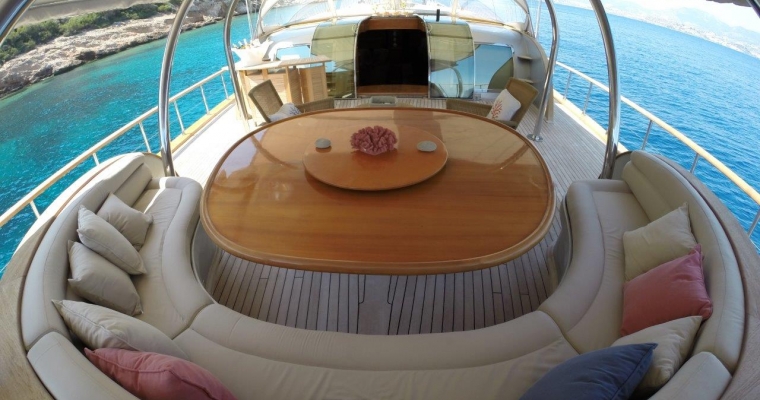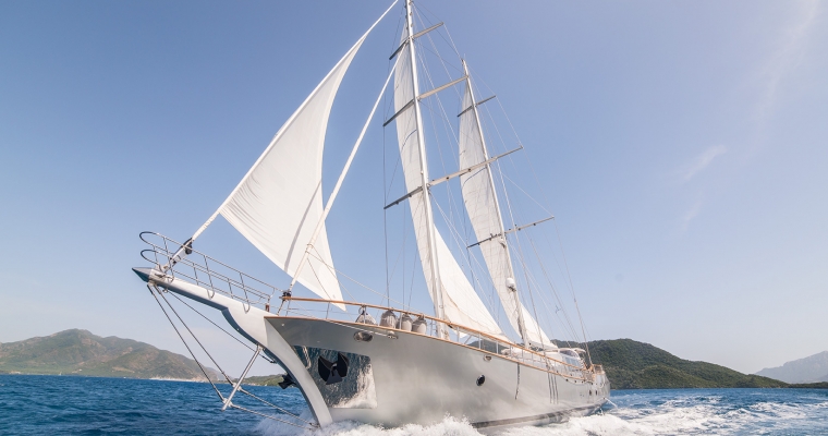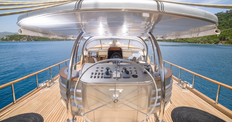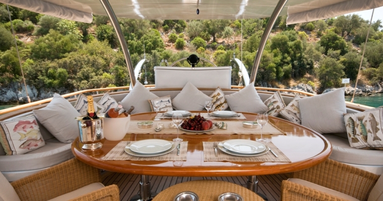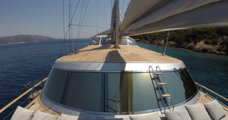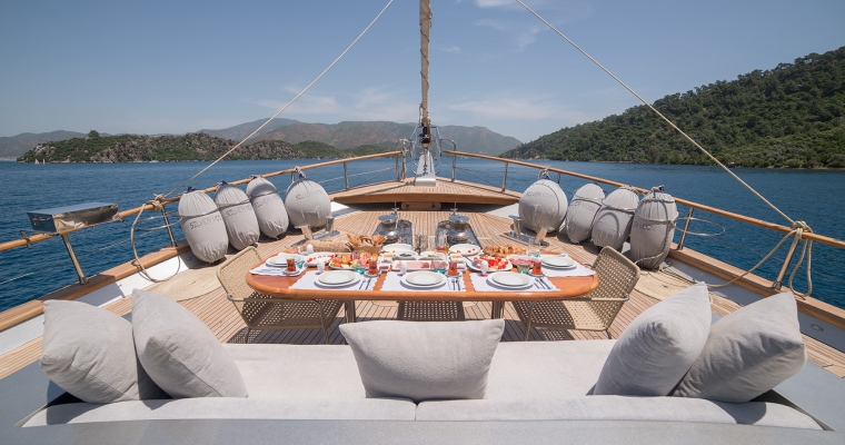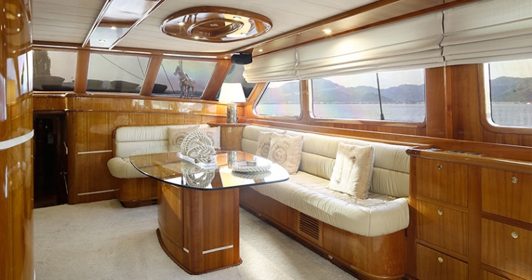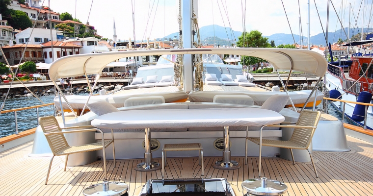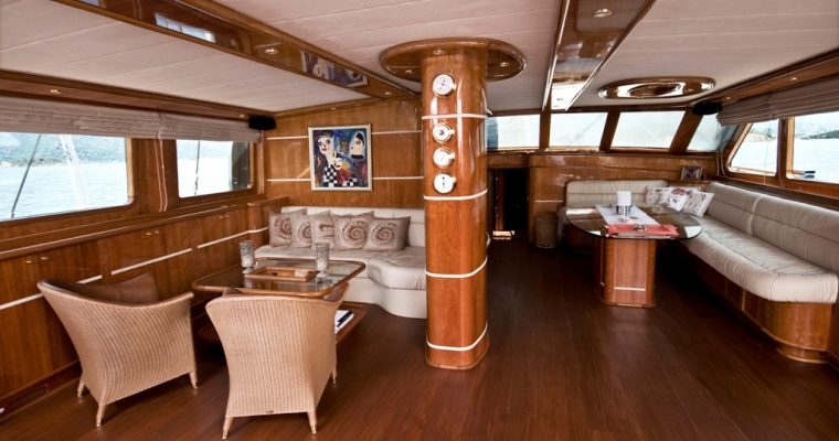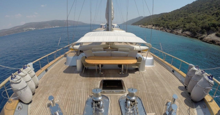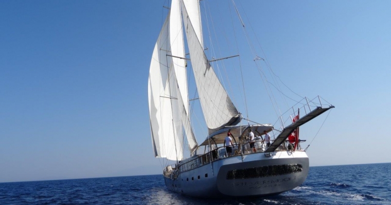 Built in 2010, SILVER MOON is an excellent example of classic motor sailor offering a comfortable and elegant interior combined with the most modern technologies. The wellappointed interior boasts finest cherry mahogany wood and highquality furnishings. The main salon is spacious with plenty of natural light and features a lounge dining table and a comfortable seating area huge forward fullbeam master. The comfortable shaded Aft deck has seating for up to 12 guests , there is a small bar for serving pre dinner drinks. The forward deck features a large sunbathing area as well as a shaded dining table for up to 8 guests. 1 huge forward fullbeam master offering seating and vanity area, lenty of storage. with large bathroom, decorated in marble and large shower with his and hers sinks. 1 huge VIP (2nd Master) Aft, with large ensuite bathroom, with his and hers sinks and plenty of storage, 1 Guest cabin with a small double and single bed in one ensuite cabin . 1 single cabin with a pullman is perfect for 2 children. All cabins have Digiturk Satelite TV. Based in Marmaris, SILVER MOON is available to start/end charters in Gocek and Bodrum without relocation fees. The transfer from the airport of Dalaman to Gocek or Bodrum is included in the charter rate.