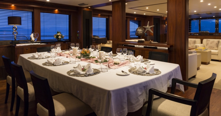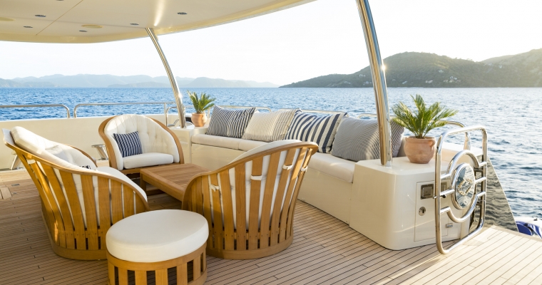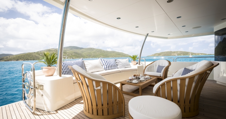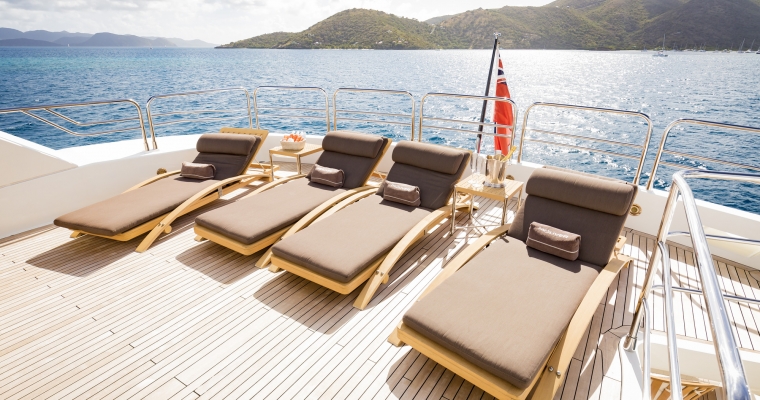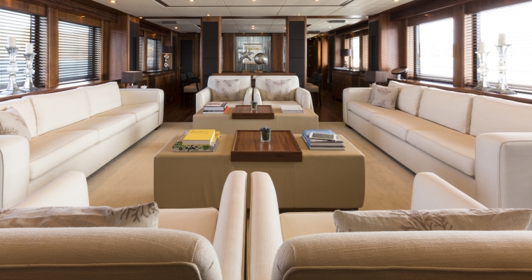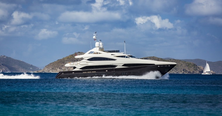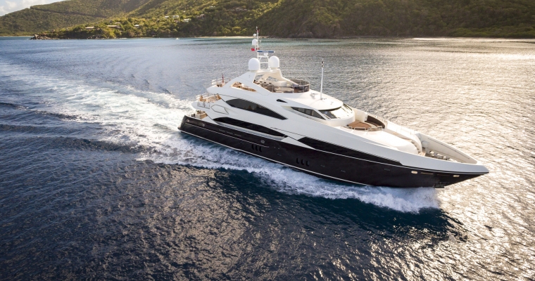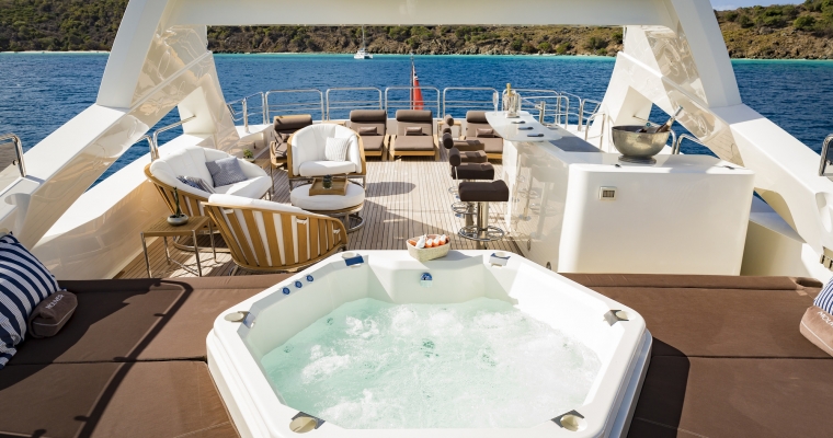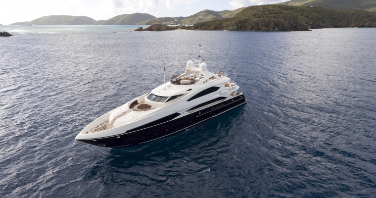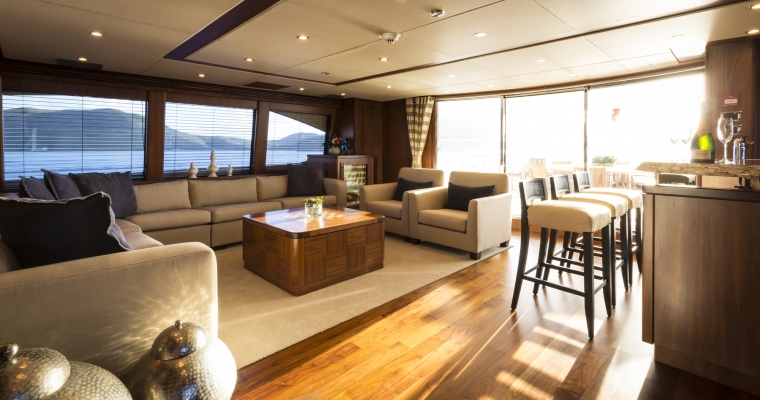 Designed by naval architect Don Shead, Moliver was built in GRP by UK yard Sunseeker International to RINA class and launched in 2009. MCA compliant, she has three spacious internal decks with luxurious accommodation for ten guests in five cabins. She has a gorgeous interior in rich gloss cherry wood and is fitted with Bang & Olufsen sound and vision throughout. The master suite is located on the main deck and has a king sized bed while below there are two identical double suites with queen sized beds plus two twins, one with a Pullman berth. All have full en suite facilities and access to the yacht’s on demand Kaleidescape film and audio server Moliver's main saloon, with a richly decorated interior design, has a bar and spacious seating plus a large television screen and entertainment system acting as a divider from the dining area with formal seating for 12 guests. The large upper deck of this yacht for sale offers al fresco dining with a bar, barbecue, sun pads, loungers and a Jacuzzi tub. More outdoor entertainment is available on the aft deck of this yacht for sale, with built in bench seating along with a table and chairs for six guests. Powered by twin 2,735hp MTU engines, she has a cruising speed of 20 knots, a top speed of 24 knots and is fitted with Trac Star digital fin zero speed stabilizers.