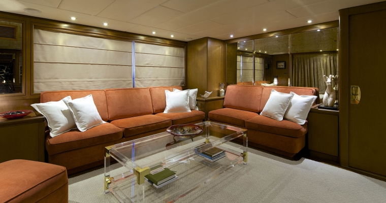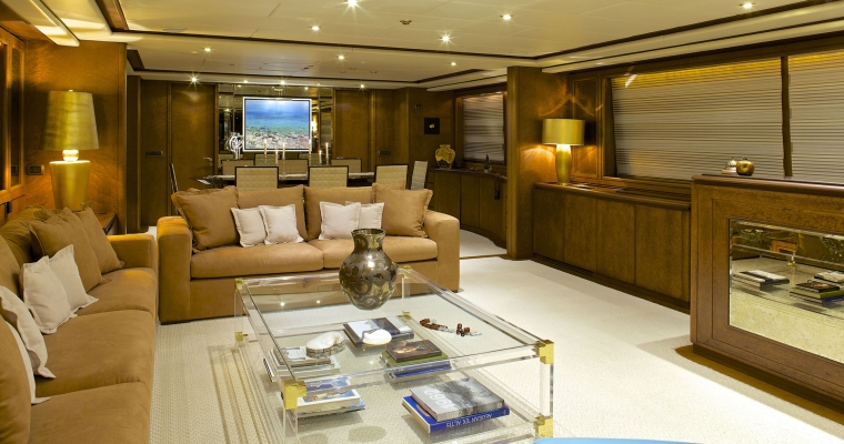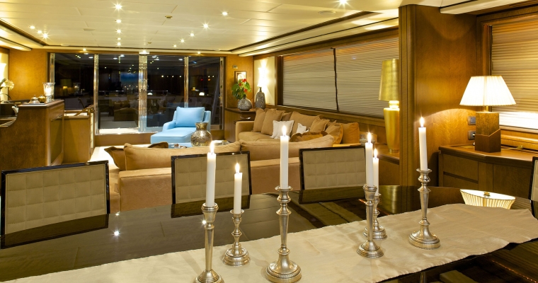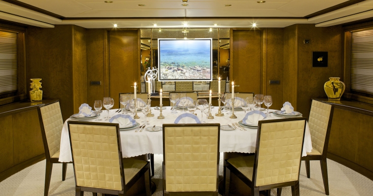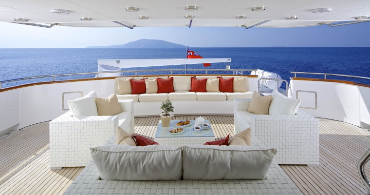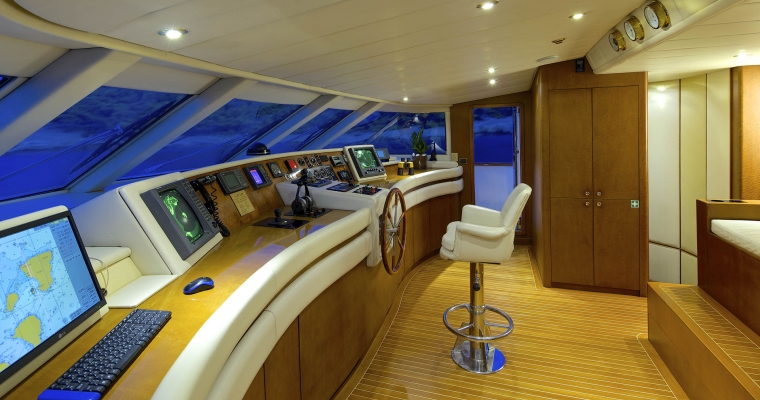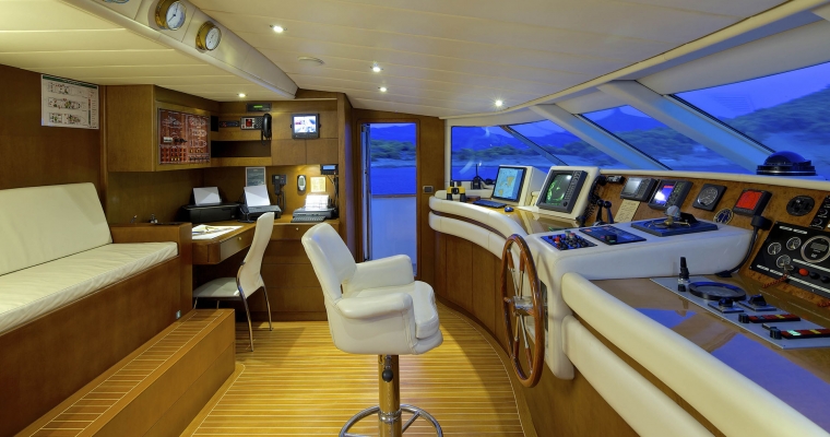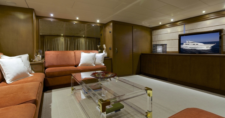 Tenders & Toys: One Zodiac RIB 5,60m with 100hp outboard, Sea Doo wave runner GTR 215 (2 seater), water skis, knee board, two wake boards, two sliders, donut, (2 seater), banana, two seabeds, chairs/beach umbrellas, fishing and snorkeling equipment. Audio Visual Equipment and Deck Facilities: SAT LCD TV/DVD/CD entertainment in all cabins. BOSE Home Cinema and sound system in Salon and Sky lounge. Full music system throughout the yacht. Apple TV Video on demand. Jacuzzi on the Sun Deck. Communications: SATCOM GSM 8 VHF 2 Radars GPS/Plotter Yacht wide WIFI Full Internet Access Guest computer/Printer
