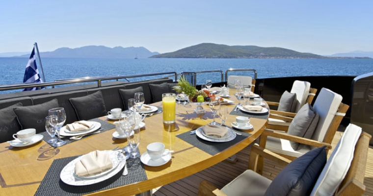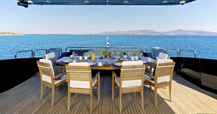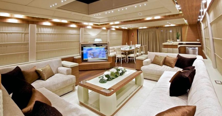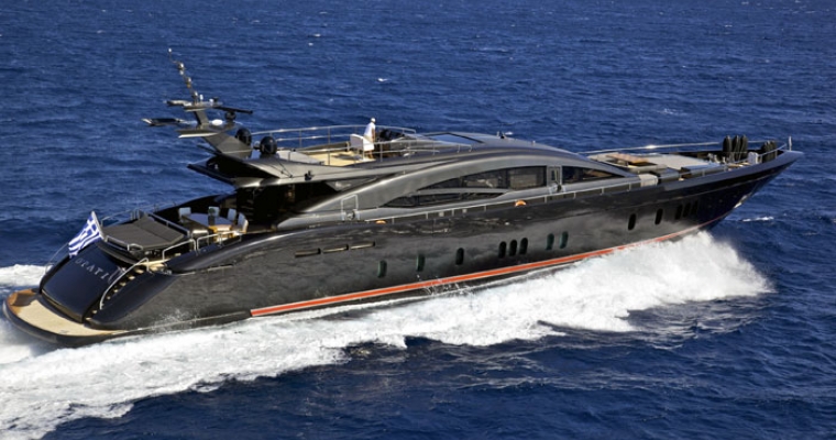 A unique 40m open yacht in the East Med market with a minimal interior environment. This impressive modern motor yacht with her dark hull and sleek powerful lines designed by Giorgio Vafiadis, was built in 2011 by Golden Yachts, in Greece and has been awarded by International Super Yachts Society as the Best Power Yacht 24-40 meters. Her spacious exterior areas offer large sunbeds for sunbathing lovers and ample space for al fresco lunches under the large retractable automatic awning. Her stylish minimal interior in leather, wood and high quality fabrics features a main salon with a luxuriously sized central sofa with home theatre and a comfortable dining area on main deck.