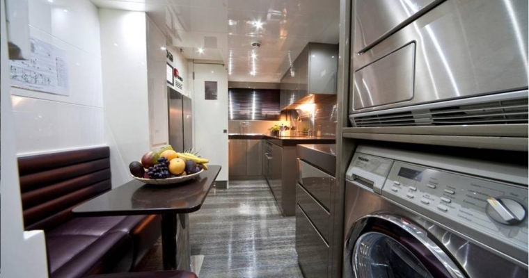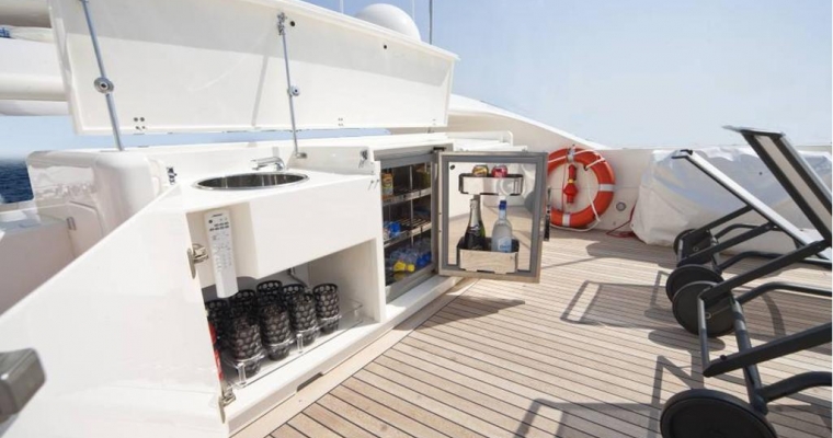 Tenders & Toys: 4.80 mt Novurania dinghy with 60 hp engine. 3 seats 130 hp Sea Doo watercraft Scarabeo 125 cc scooter available for the guests Snorkeling equipment Donuts x 2 Monoski x 1 Waterski x 2 2 x wakeboard (1 X adult, 1 x child) 1 x Seabob The use of watercraft/jet ski is only permitted with regular license, valid in Italy. License must be shown by guests BEFORE EMBARKATION (sent to the brokers), otherwise the watercraft will be taken off board. Audio Visual Equipment and Deck Facilities: Hi-Fi System SAT TV 46\\\' in main salon SAT TV 46\\\' in lower deck salon and in Owner suite SAT TV 32\\\' in all cabins Communications: GSM phone SAT phone Wifi Internet connection available