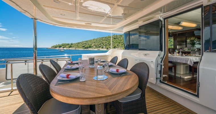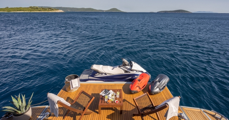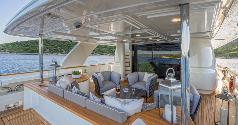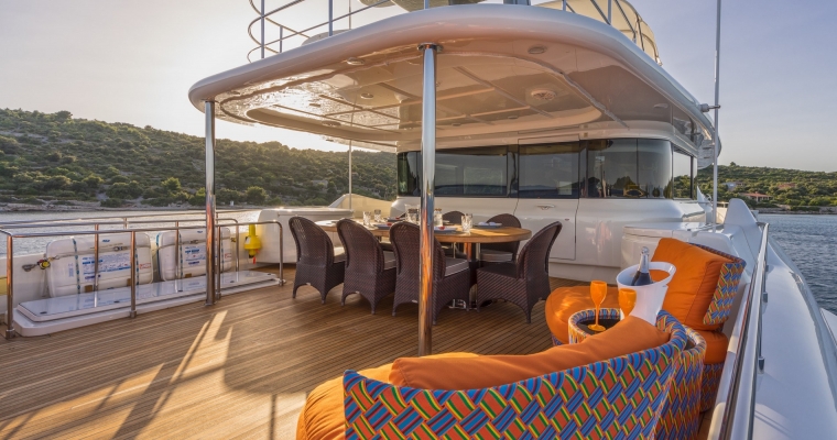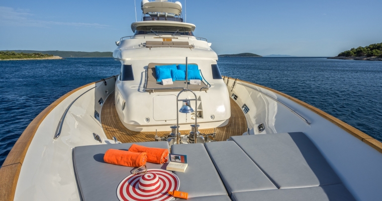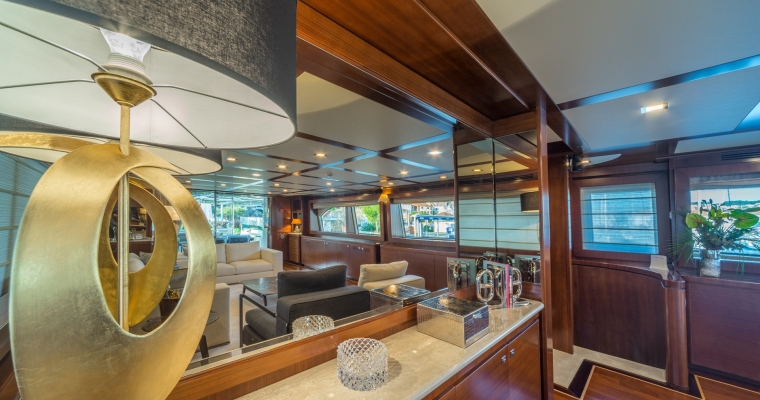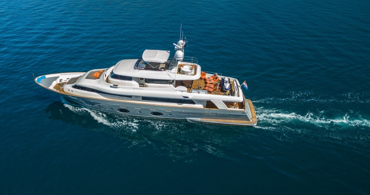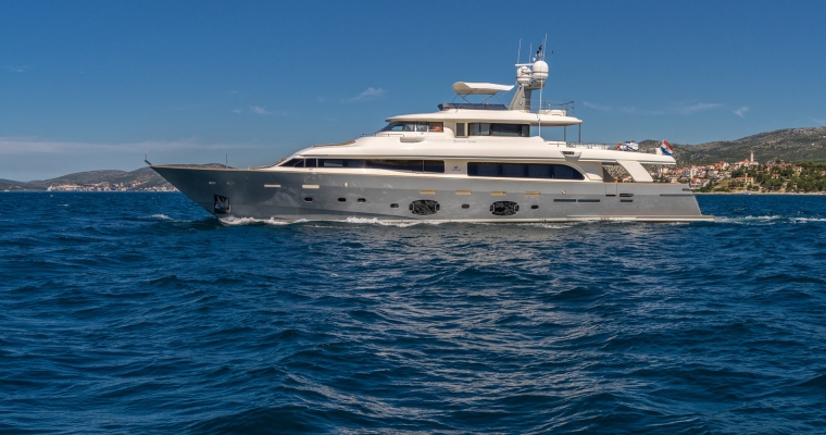 Originally custom built in 2008 by Custom Line, luxury motor yacht SEVENTH SENSE (ex Lady Trudy) is a beautiful and well sized 33-metre vessel, currently under refit. She has been entirely designed by acclaimed Zuccon International Project. A total number of 12 people can be accommodated aboard SEVENTH SENSE in pure luxury and comfort. There are five tastefully appointed staterooms, including a lovely master suite, a VIP stateroom, a double cabin, two twin cabins and two pullman beds. The vessel managed by a dedicated and friendly crew of 5. Built in composite, SEVENTH SENSE can easily reach a top speed of 19,50 knots. She can comfortably cruise at 16 knots, and has a range of 898 nm.