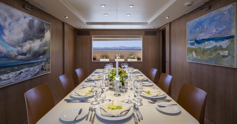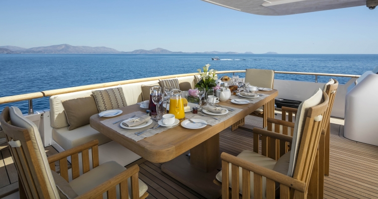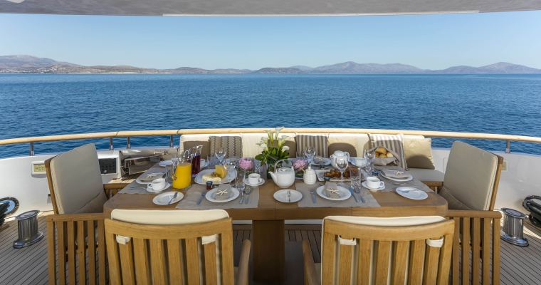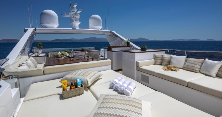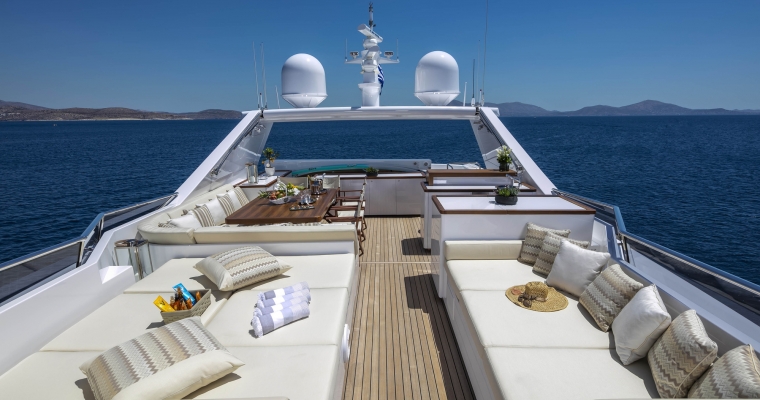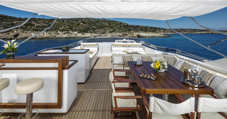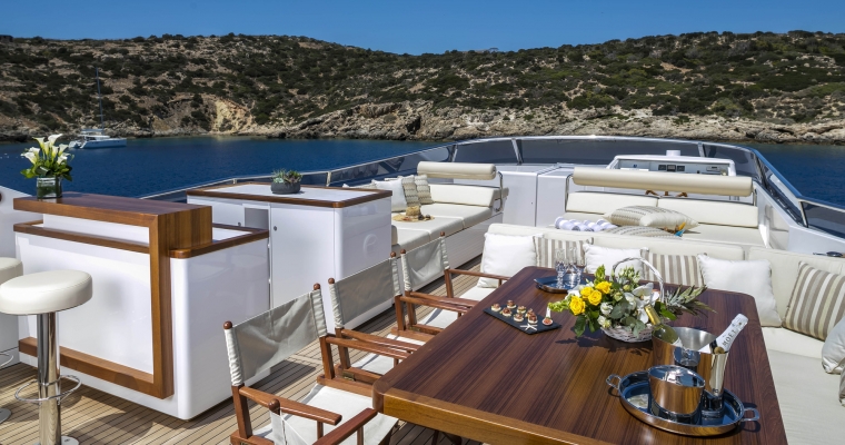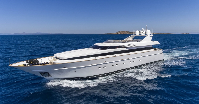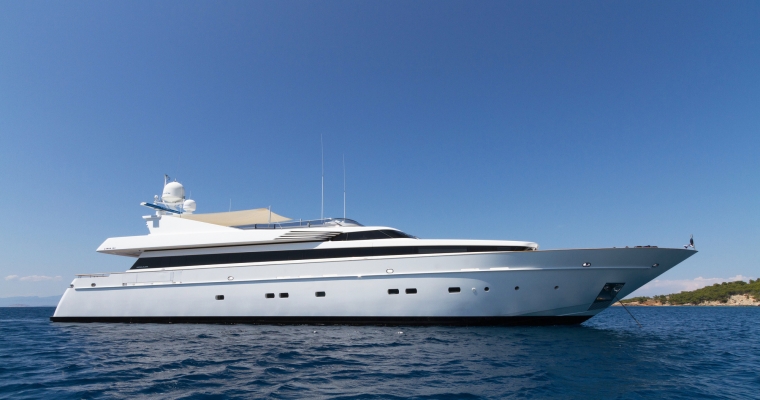 The Akhir 100 MY ALEXIA AV is perfect for those seeking fast cruising with maximum comfort for all onboard. On the main deck, Motor yacht MY ALEXIA AV features a beautiful and comfortable salon with neutral colours and furnishings. The stylish dining room is forward of the galley and boasts a striking yellow and green mosaic artwork. The interior has been finished in fine wood and panelling which enhances the stylistic motifs. Luxury motor yacht MY ALEXIA AV can accommodate up to 10 guests in 4 luxurious staterooms. Her cabin configuration consists of a Master cabin with king bed and ensuite facilities, a VIP cabin with queen bed and ensuite facilities and 2 Twin Guest cabins, each with extra pullman bed and ensuite facilities. All; cabins are located on the lower deck accessed via a staircase just forward of the salon. M/Y ALEXIA AV has a spacious upper deck with al fresco dining and sun bathing areas. The aft deck is also perfect for al fresco dining or a morning coffee. Finally there is a seating area all the way forward. The Akhir 100 motor yacht MY ALEXIA AV has twin 2.252 BHP MTU engines enabling her to reach speeds between 23-25knots. She is based in Greece year round and has a professional crew of 6 to cater to your needs while onboard. Year refit: 2017 Refit/Maintenance Details: 2016: Full Repainting Replacement of teak rubbers in all decks Partial replacement of interior wooden floor Varnishing of interior wooden floor General generators service Installation of new Audio Video System with Apple TV Integration New flybridge layout New cushions interior / exterior