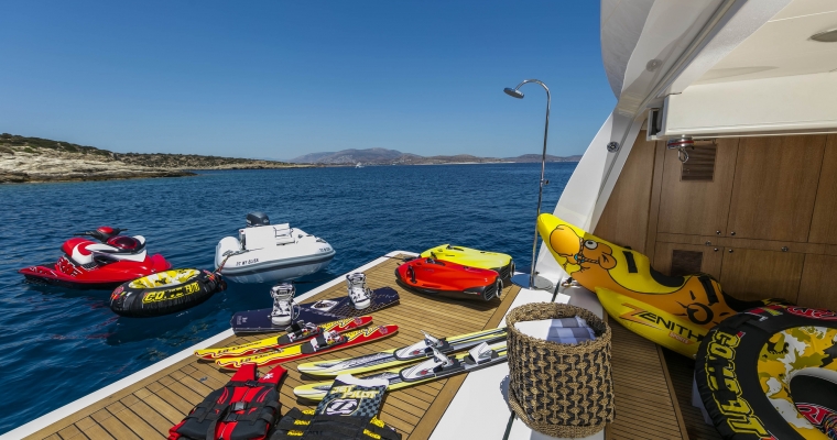 Tenders & Toys: 1 x Novurania 4.30m with Yamaha 60HP 1 x 2seater Sea Doo Jetski RXP-155 2 x Seabob f5 1 x Banana (3x seater) 1x Tube (1x seater) 1x Tube (2x seater) 2 x SUP Water skis Snorkeling equipment Fishing equipment Communications: VHF 1 x DSC Skanti 1 x Furuno NIIC 1 x Icom SATCOM SYSTEM 1 x Seatel SatTV receiver with Bose Audio Entertainment Apple TV Box/Nova Box DVD System AUTOPILOT 1 x Sperry Marine Navpilot HSC NAVTEX 1 x Furuno Navtex NX-500 DEPTHSOUNDER 2 x Bug M1000 GPS 1 x Furuno GPS Navigator WAAS GP-37 GPS-PLOTER 1 x Furuno Navnet C-MADNT RADAR 1 x Furuno X-band 76 nm SEARCHLIGHT Electric SPEEDMETER 1 x Bag GSM - Phone, Fax SAT Phone FBB - 150