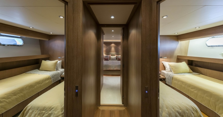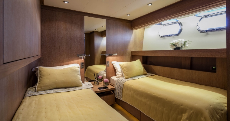 One Master Suite with king size bed One VIP Suite with queen size bed Two Twin Staterooms, each with one pullman berth All accommodation are with ensuite facilities and are located on the lower deck
