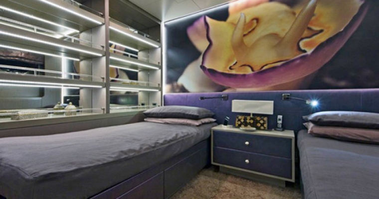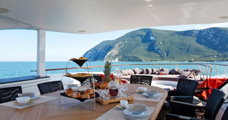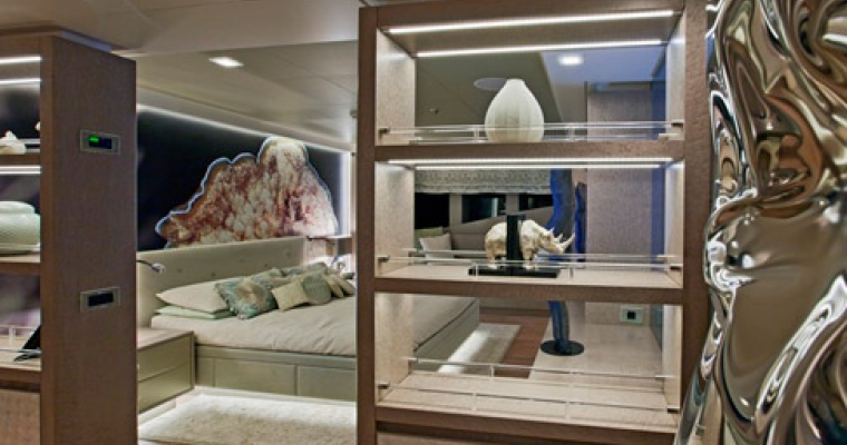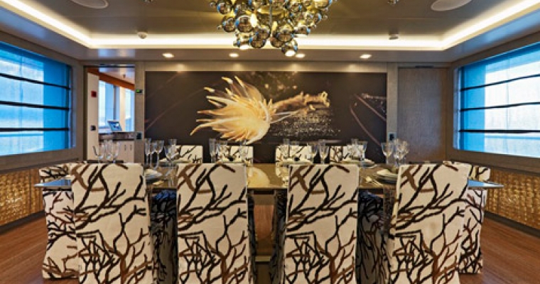 With huge volumes, impressive performance and a unique designer interior, this sophisticated statement yacht was created to meet the very specific requirements of her discerning owners. With her sleek, dark grey hull and dynamic lines she conveys a sense of power and speed that does not disappoint. Fully stabilised and capable of speeds in excess of 15 knots, she is comfortable, fast and remarkably fuel efficient. Resolutely contemporary, the interior décor is striking yet comfortable and immediately welcoming. Inspired by the ocean, the luxurious staterooms each reflect a different theme, based on a variety of sea creatures: tortoise, seahorse, shark, nautilus, shrimp, starfish and coral. Her well-appointed, spacious deck areas are designed for maximum flexibility, adaptable to every situation from private sunbathing to elegant cocktail parties. For those who prefer a more active lifestyle, LIBERTY is equipped with a wide range of water sports equipment and boasts the very latest in entertainment and communication technologies.