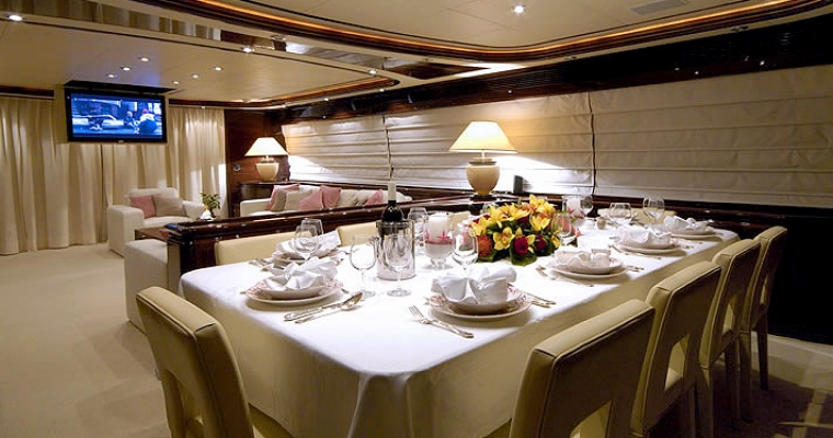 Tenders & Toys: YAMAHA XLT 1200 WAVERUNNER 2 SEATS Tender Williams TurboJet 445 with 110 hp inboard engine (New 2011) water skis ring Floating island snorkelling equipment 2 kayaks 2 paddle boards Year refit: 2016 Refit/Maintenance Details: All carpets changed in all area of the yacht. New spotlights in the ceilings. Wireless internet connection through satellite (high speed). Sky, Canalsat and arab satelite channels. All bed covers and sheets changed. New cutlery, glassware and chinaware. New entertainment system in the salon (Bose system). Ipod connection. DVD library. SONY multimedia computer in the salon for guest use. New umbrellas for the flybridge. New cover for outside cushions. New water toys. All mechanical upgrades in the engine room. New coffee machince (Nespresso). Hull polished. Jetski maintanence. New bimini top. Commercial requirements for the flag state. New life savings gear. 2009 new paint of the hull 2010 Underwater lights installed. 2011 Two new Navitel Satellite TV Installed Sky and Canalsat with Arab channels, Ipod stations installed, Movie Server installed , All TV\\\'s replace with LED TV\\\'s, All cabins have access to Sky UK and Canal Sat. Music server installed, New interior varnish , New wooden floor in the galley Twin cabin beds widen to 90 cm each 2015/2016 complete refit including paint hull