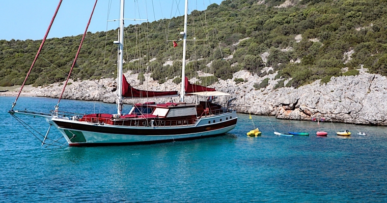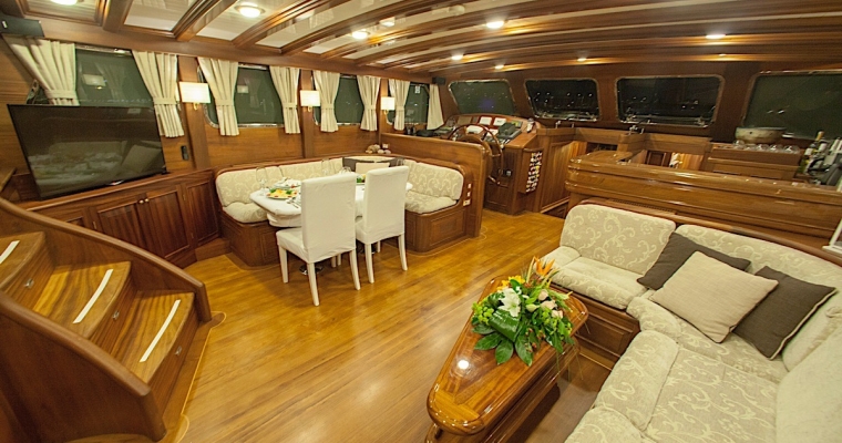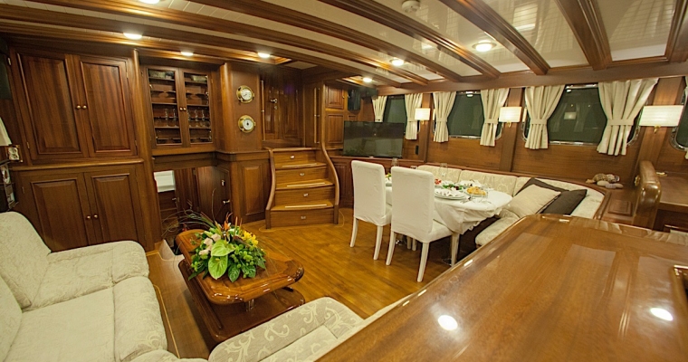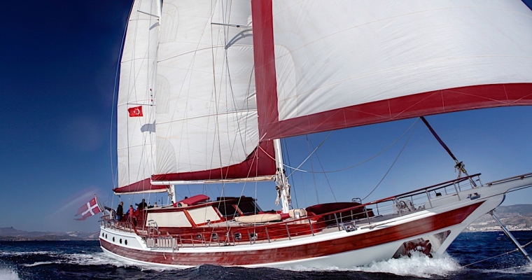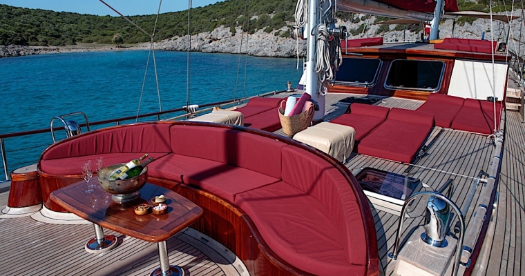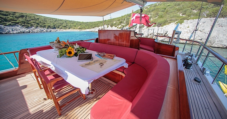 This superb yacht was born of her owner's dream to create the perfect cruising vessel in which to travel the world. A group of skilled craftsmen put their talents to work in the creation of CLARISSA and of course, only the finest quality imported materials and fittings were used throughout. CLARISSA's winches and entire rig were imported from Denmark, ensuring the best possible sail performance. Six years on, CLARISSA has now been made available for private charter and as one of the most comfortable and elegant motor-sailers of traditional construction afloat, offers her guests a 5-star cruising experience. CLARISSA has a beautifully appointed interior, with guests accommodated in four spacious cabins, each served by individually controlled air conditioning/heating and fitted with intercom telephone. Each en suite bathroom has been fitted with shower stalls, one of which incorporates a bath. A yacht to inspire and delight: CLARISSA and her crew of five bid a warm welcome to those embarking on a discovery of the Turkish Coast and adjacent islands!