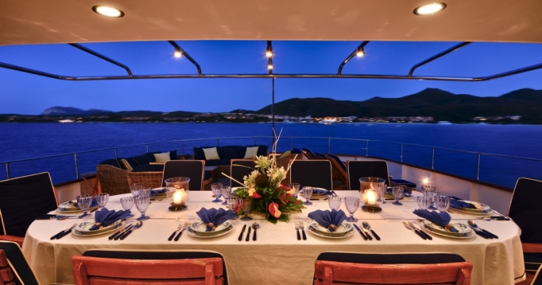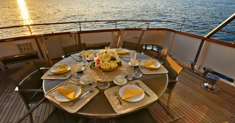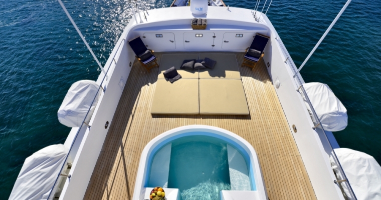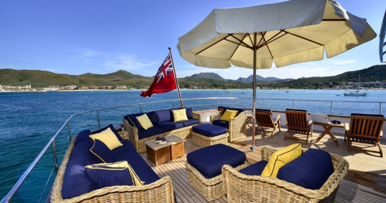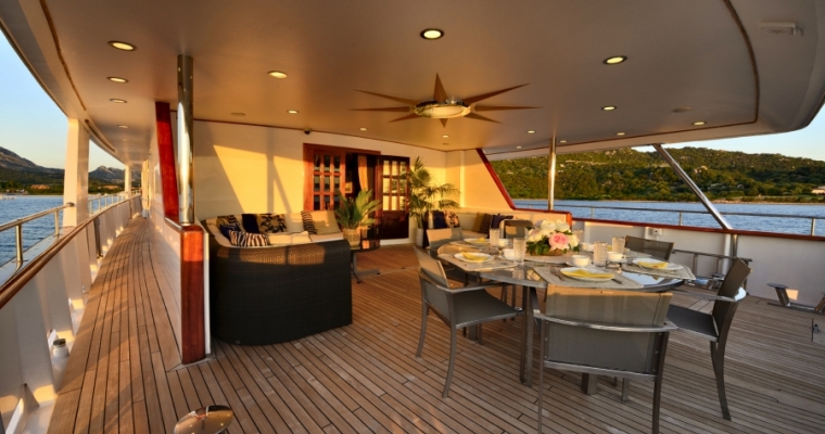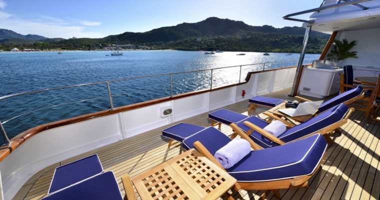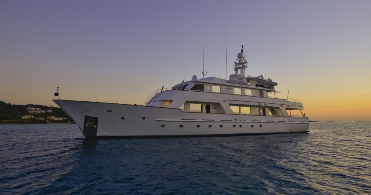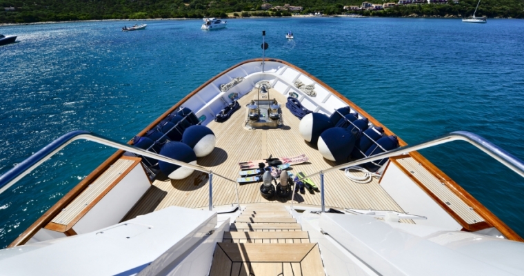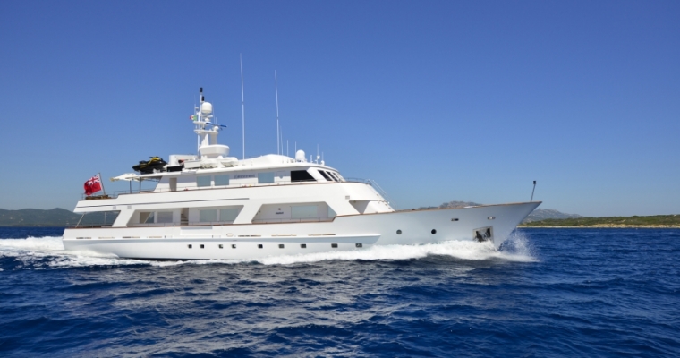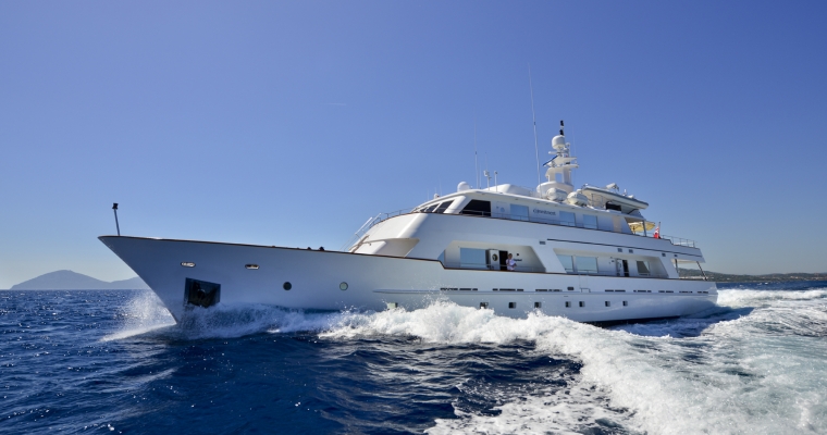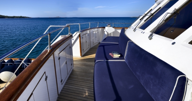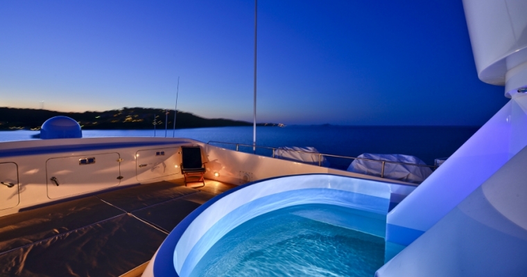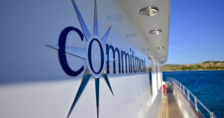 Motor yacht Commitment was built in Italy to Dutch design. Her design has enabled both superb sea keeping qualities and an excellent use of space, both inside and out, giving Commitment a perfect combination for private cruising or entertaining exclusive parties. After completing a refit in 2003, Commitments’ interior has a feeling of special warmth combined with great appeal. Rich mahogany paneling surrounds the main saloon and is a theme carried through the yacht. The choice of four dining areas and a private sun deck just add to the list of excellent facilities on board. These areas include the Main saloon with dining for twelve and games area, the forward Breakfast area, and the Aft deck and boat deck which both also have dining facilities for twelve. Several seating areas and sun loungers are available on the boat deck and the private upper deck with plunge pool is reserved for sun worshippers with total commitment. The yacht Commitment and her crew can cater for young children both in respect of safety equipment, toys and on board protection for children or give the highest levels of personal service as you step aboard this luxury crewed motor yacht. Yacht Accommodation Motor yacht Commitment can accommodate up to 11 quests comfortably in 5 staterooms. These include a Full-width master stateroom on upper deck with en suite shower room, sauna and lounge. Two full-width cabins on the lower deck with king-sized beds, one with en suite bathroom and jacuzzi, the other with en suite shower room. There is an option to have an extra single permanent bed by arrangement in this room. Finally there are two twin-bedded cabins with en suite shower rooms. Commitment has two baby cots with linen available upon request.