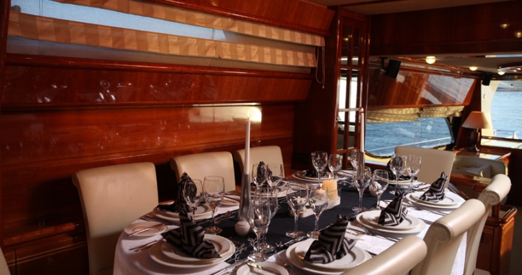 Tenders & Toys: One speedboat 4,3m with 60hp outboard, one waverunner Sea Doo Spark 900cc, water-skis, mono-skis, tubes for two persons, diving equipment for two persons, fishing and snorkeling equipment. Audio Visual Equipment and Deck Facilities: Satellite TV, VCR. DVD, Hi-Fi Audio System, i-pod, Bose Home Theater and Playstation III in salon. Satellite TV, DVD, CD player and Hi-Fi stereo entertainment in Master & VIP cabins. CD player and Hi-Fi stereo entertainment in Twin cabins.
