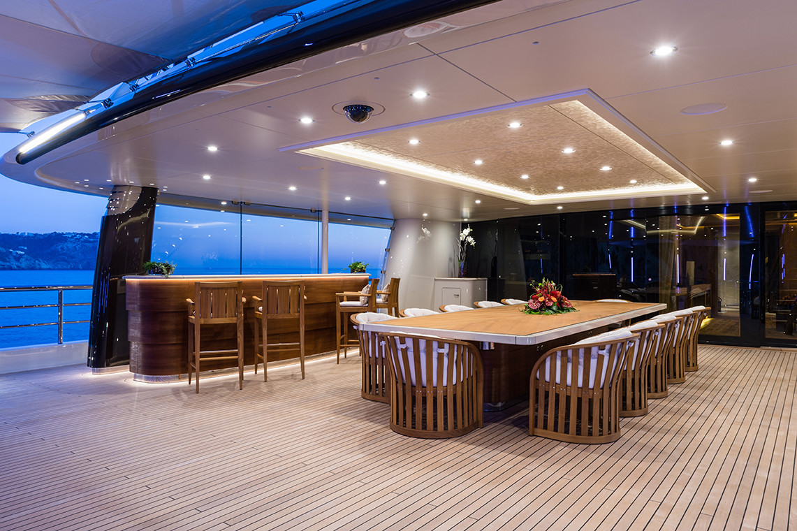 Featuring graceful and elegant lines by Tim Heywood and a unique contemporary interior by Winch Design, this stunning yacht boasts unique features, including privileged Owner's and VIP suites on the upper deck as well as two VIP and 3 guests' staterooms on the main deck, a beach club with fold down terraces featuring a wellness and spa center, a huge infinity pool with wet bar, a luxurious theatre, a grand piano, just to mention a few. With endless options for complete indulgence and entertainment, guests will be pampered to a breathtaking retreat by Captain Michael Droszcz and his highly trained and attentive crew of 24. From the majestic luxury to the palatial spaces, from the excitement of active watersports to the ultimate relaxation, from the exquisite service to the delicious culinary experience, your yachting experience will be unsurpassed!