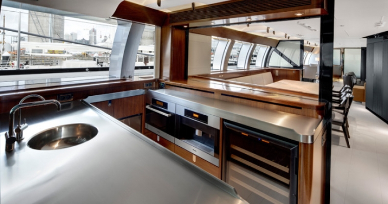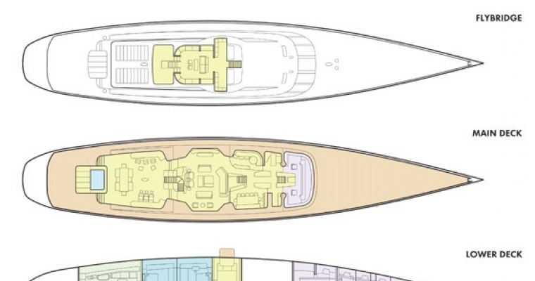 8m fully enclosed (with removable roof) limo tender custom built by Lloyd Stevenson Boatbuilders * 2 x 6m Nautica RIB tenders with 150hp 4 stroke Yamaha outboards * 2 x Topper Topaz sailing dingies with a variety of rigs for differing skill levels * 4 x Rigid Ocean Kayak sit on top style kayaks * 4 x Trek 6700 Mountain Bikes 2 each in ladies and mens sizes * 6 x Scuba sets * Multiple wetsuits in differing sizes * Multiple flotation jackets in differing sizes * 2 x Stand Up Paddleboards * Waterskis and Wakeboards with adjustable bindings * Inflatable pool with mesh bottom designed to be attached to the transom door * Inflatable bouncer with slide Audio Visual Equipment and Deck Facilities: In general the system is controlled from AMX touch panels located in each area, the sources available in each space are: 1. Apple TV - provides Music, Movies and TV shows as well as online access to You Tube 2. Apple Mac computer which is best controlled using the iPad located in each space although limited control is also possible with the AMX touchpanel 3. Masthead Camera 4. Local radio 5. BluRay/DVD Player 6. Google Earth interface The AMX touch panels also display a 5 day forecast weather page, sailing instruments and control the lighting and blinds in the cabins. TV Screens are located as follows: * 55\\\\\\\" in Master cabin on lifting and swiveling mechanism * 32\\\\\\\" in each guest cabin * 55\\\\\\\" in the Saloon * 32\\\\\\\" in the main deck Playroom Deck accessories Projector and screen for outdoor movie viewing on the aft deck . Located in the aft cockpit and viewable from either in front (aft cockpit) or behind the screen from the large sunpad area. There is a BBQ grill with wet bar, icemaker and fridge on the flybridge, fridge in the cockpit, aft deck spa pool with 2 x umbrella\\\\\\\'s shading this, a roller screen to offer shade to the aft cockpit dining table. Also in the cockpit we have the opening louvre roof and the lowering side windows so that this space can be very well ventilated or able to be closed up in time of wet weather. On the flybridge there are two bimini\\\\\\\'s that fold down when not in use, either of which can be rolled forward or aft to shade or uncover the entire flybridge as required.