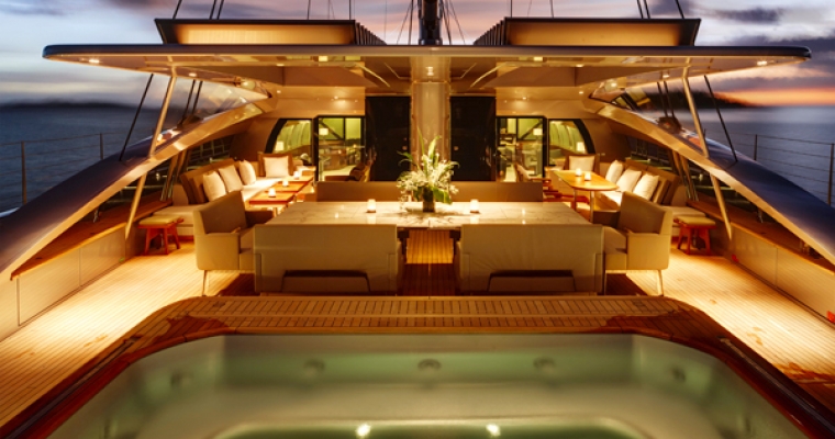 Multi award-winning VERTIGO is one of the most impressive and adventurous sailing super yachts in the charter fleet. Philippe Briand-designed 67.2m VERTIGO is the largest sailing yacht built in the Southern Hemisphere and, accommodating up to 12 guests, she provides the ultimate in spacious luxury sailing. The interior, designed by the renowned French design-house Christian Liaigre, is custom built one of her star attractions, sporting an ‘urban at sea’ ambience with sleek surfaces and a natural palette of walnut, creams and blacks. On deck she boasts an oversized 10 person Jacuzzi with retractable sunpads, versatile Bimini covers and glass screens for sun and wind protection and a midarette gymnasium with direct access to the sea. Alfresco cinema screen on the aft deck. VERTIGO features an 8m Limo tender with fully enclosed removable roof, two Nautica WB19 tenders and Avon Jet rib for water sports. Her toys list includes sailing dinghies, kayaks, paddleboards, scuba equipment and plenty of inflatables and towables.