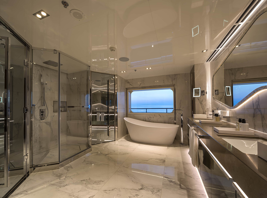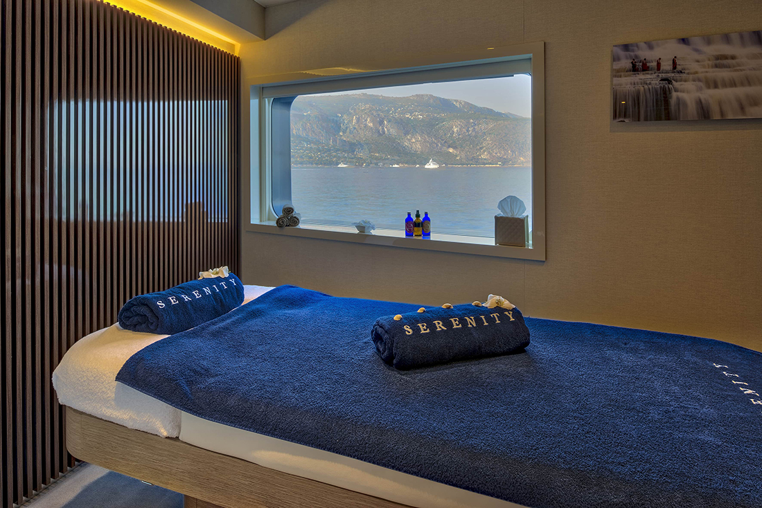 The 236.22ft /72m motor yacht, custom built in 2004 by Austal and last refitted in 2017. Previously named Tu Moana her luxurious interior is designed by AskDeco and her exterior styling is by Luiz de Basto Designs.Serenity's interior layout sleeps up to 30 guests in 15 rooms, including a master suite, 6 VIP staterooms, 5 double cabins, 2 twin cabins and 2 pullman beds. She is also capable of carrying up to 31 crew onboard to ensure a relaxed luxury yacht experience. Timeless styling, beautiful furnishings and sumptuous seating feature throughout to create an elegant and comfortable atmosphere. Serenity's impressive leisure and entertainment facilities make her the ideal charter yacht for socialising and entertaining with family and friends.She is built with Aluminium hull and Aluminium superstructure. This custom full displacement yacht also features ‘at anchor stabilisers’ which work at zero speed, increasing onboard comfort at anchor and on rough waters. Serenity is capable of 17 knots flat out, with a cruising speed of 14 knots.
