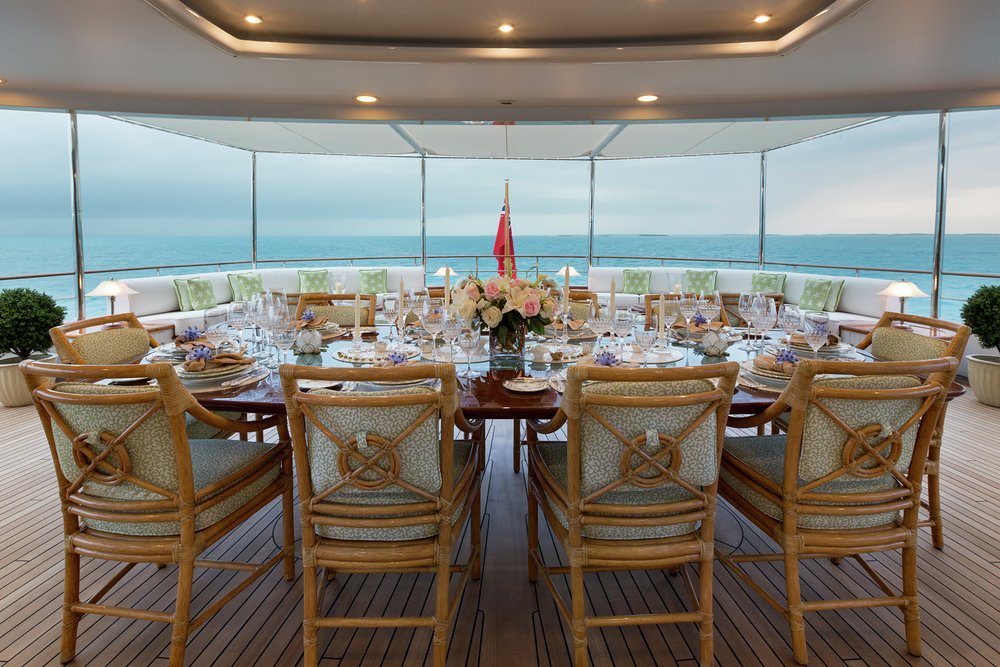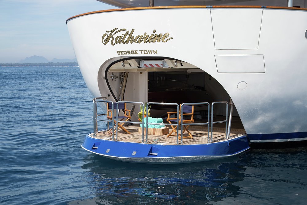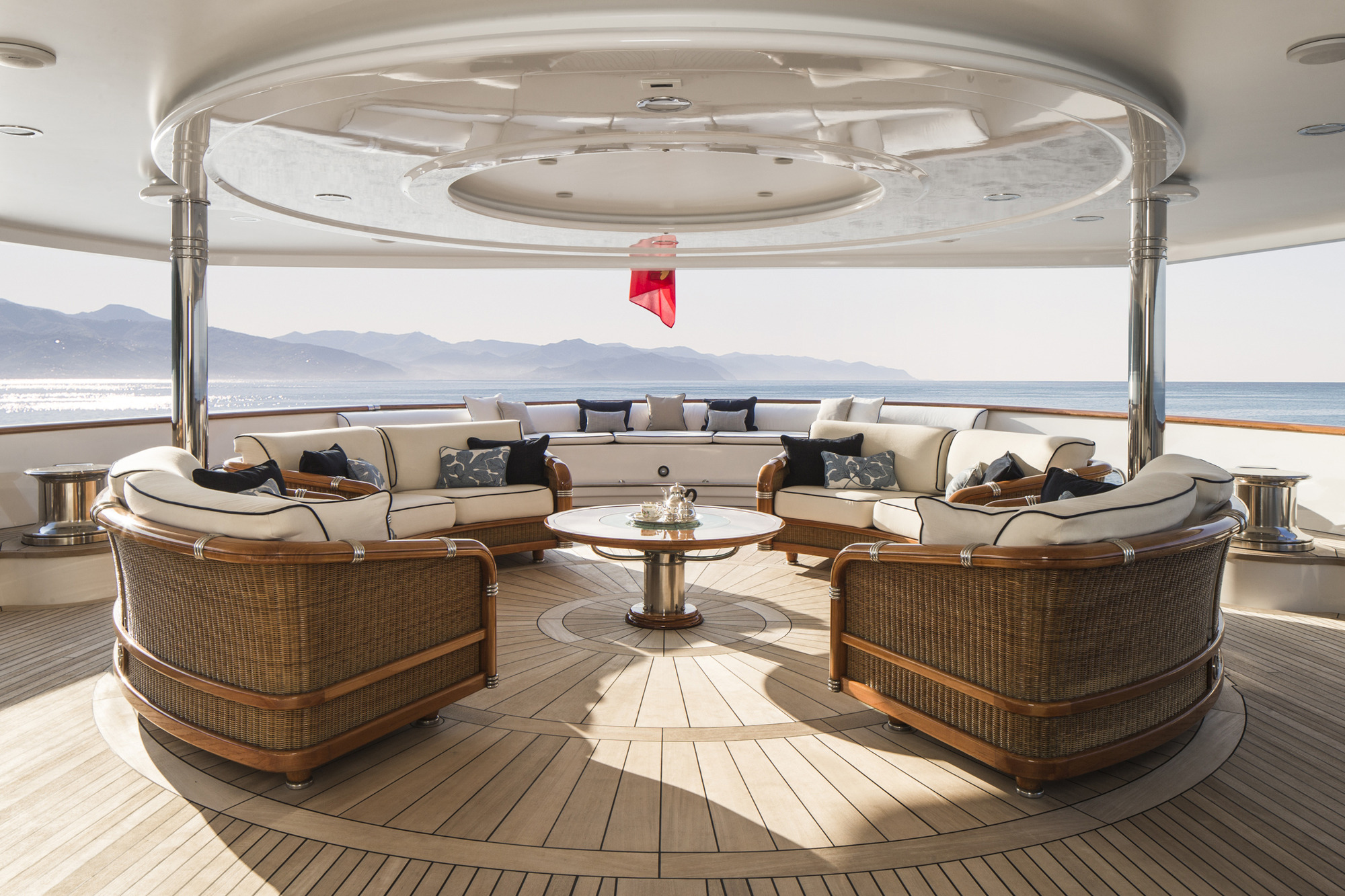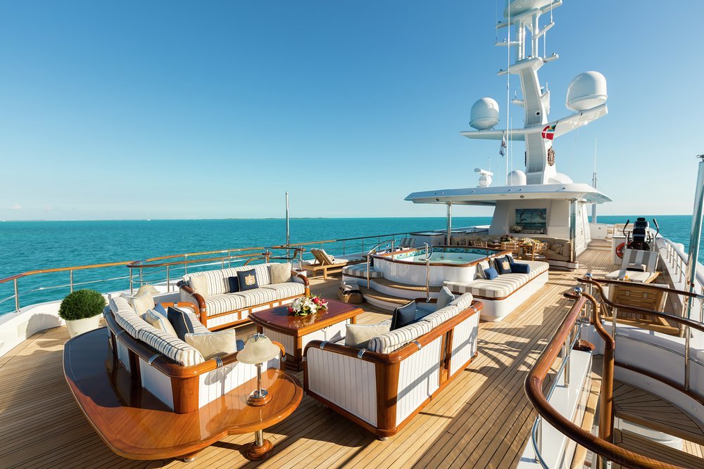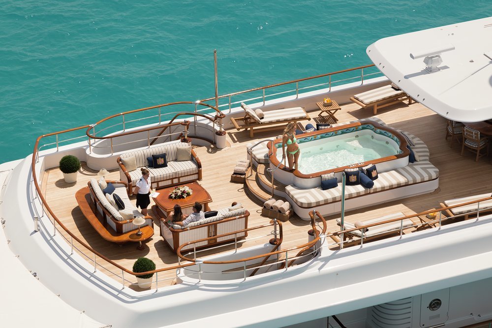 Supremely spacious, KATHARINE has huge guest areas, a beautifully equipped sun deck and plentiful options for al fresco dining. A traditional gentleman's style yacht with a canoe stern, KATHARINE is classically furnished, with a choice of spectacular entertaining areas both inside and on deck. Make the most of the outdoors with a leisurely breakfast on the sun deck, an al fresco lunch on the upper deck aft or pre-dinner cocktails on the main deck's stylish seating. Take a dip in the spectacular mosaic-lined jacuzzi on the sun deck, then toast on the soft cushions that surround the pool on three sides. Bask on a sun lounger or read a book on the sofas, while enjoying sensational views in every direction.