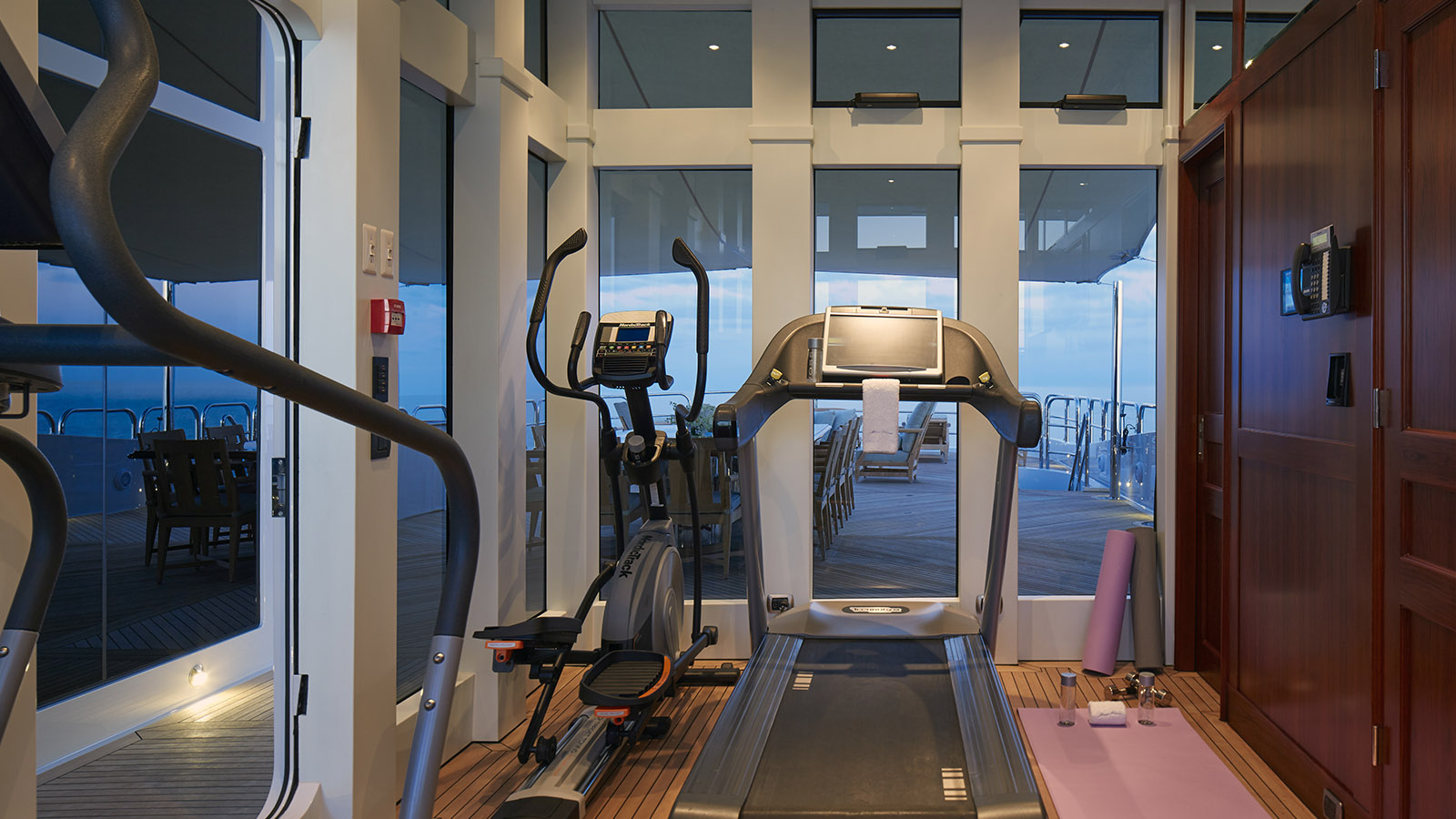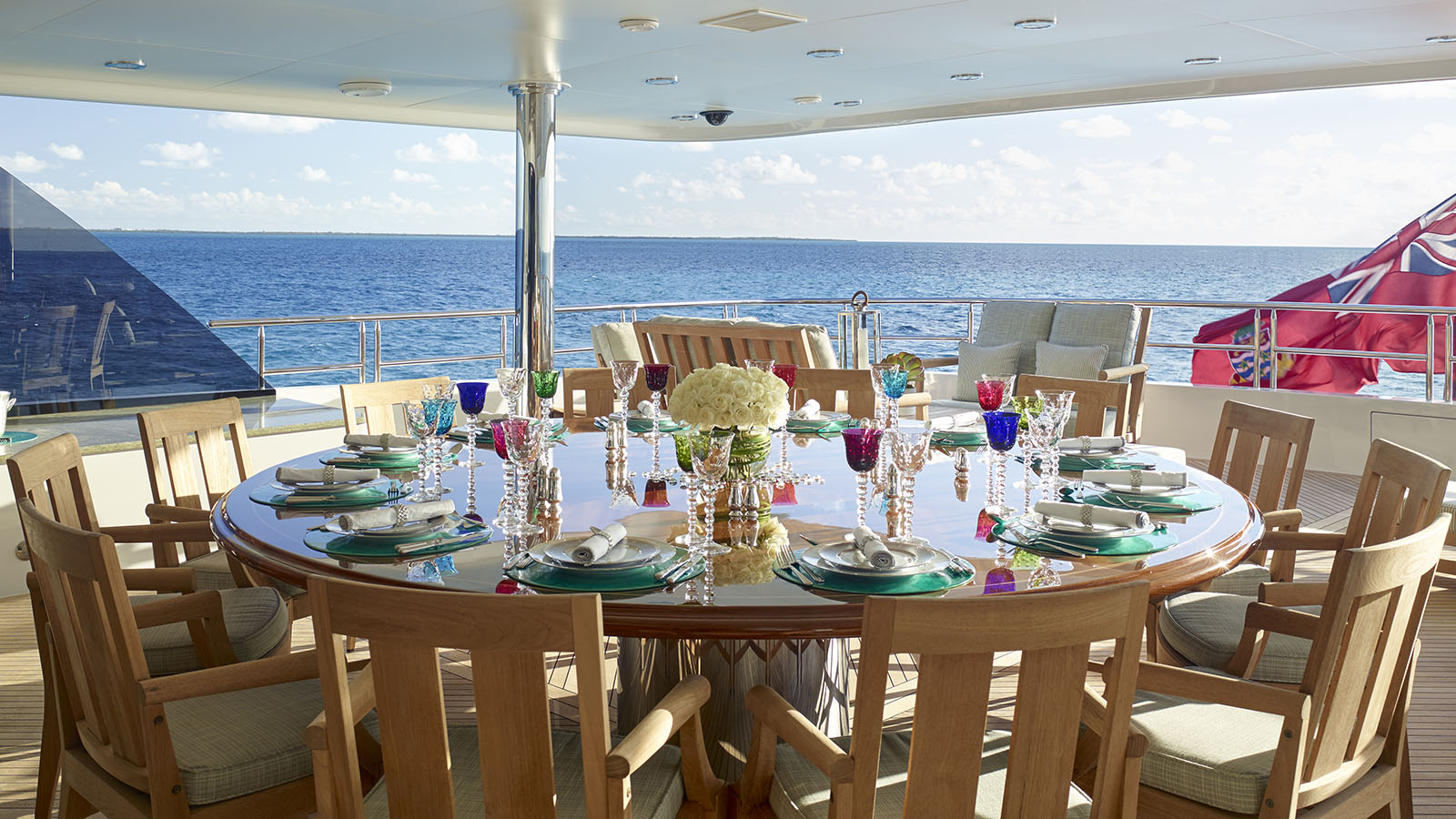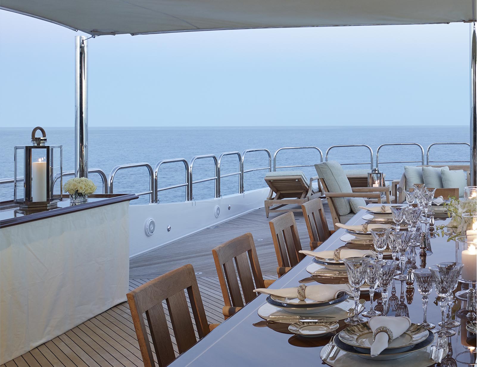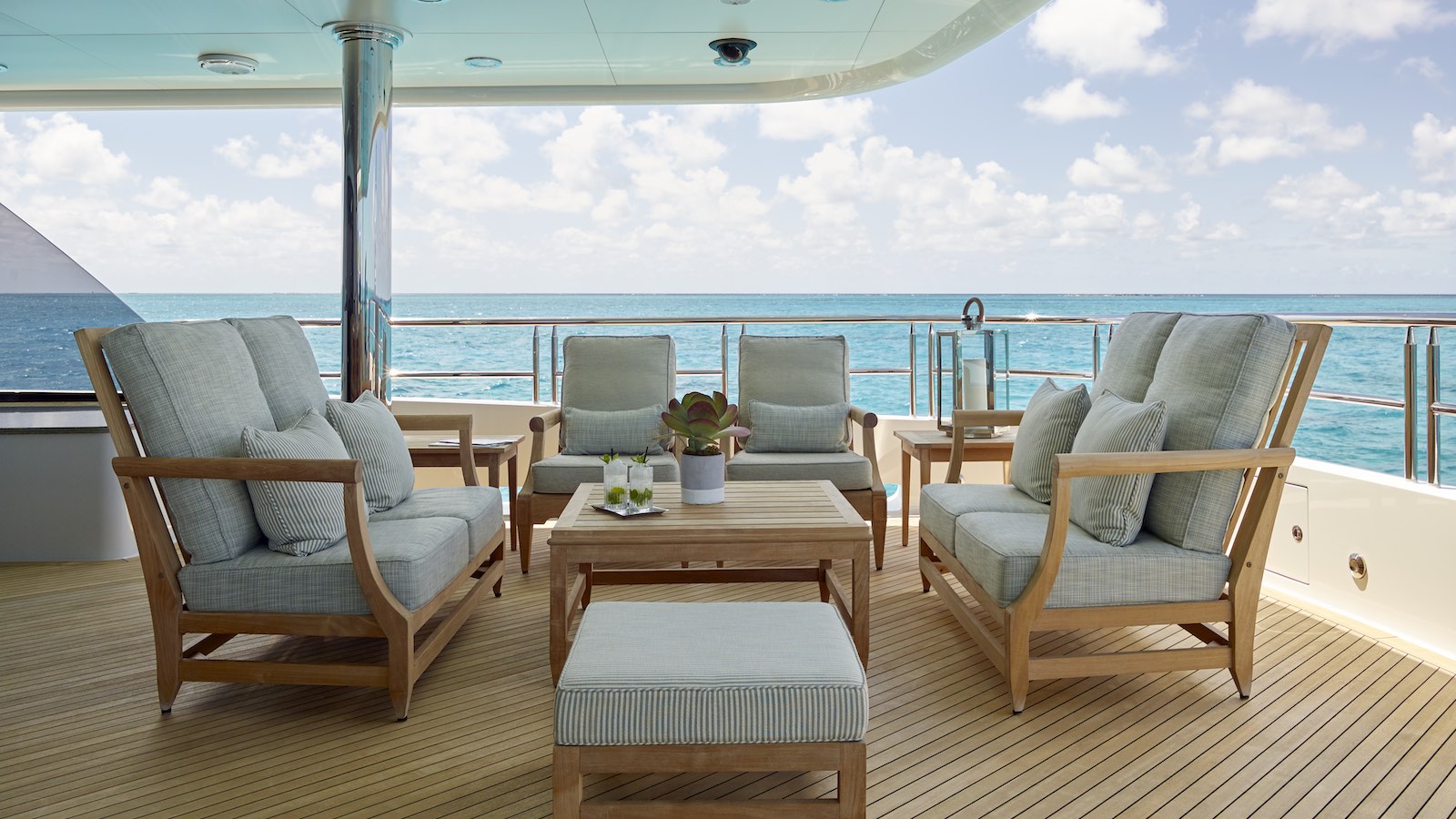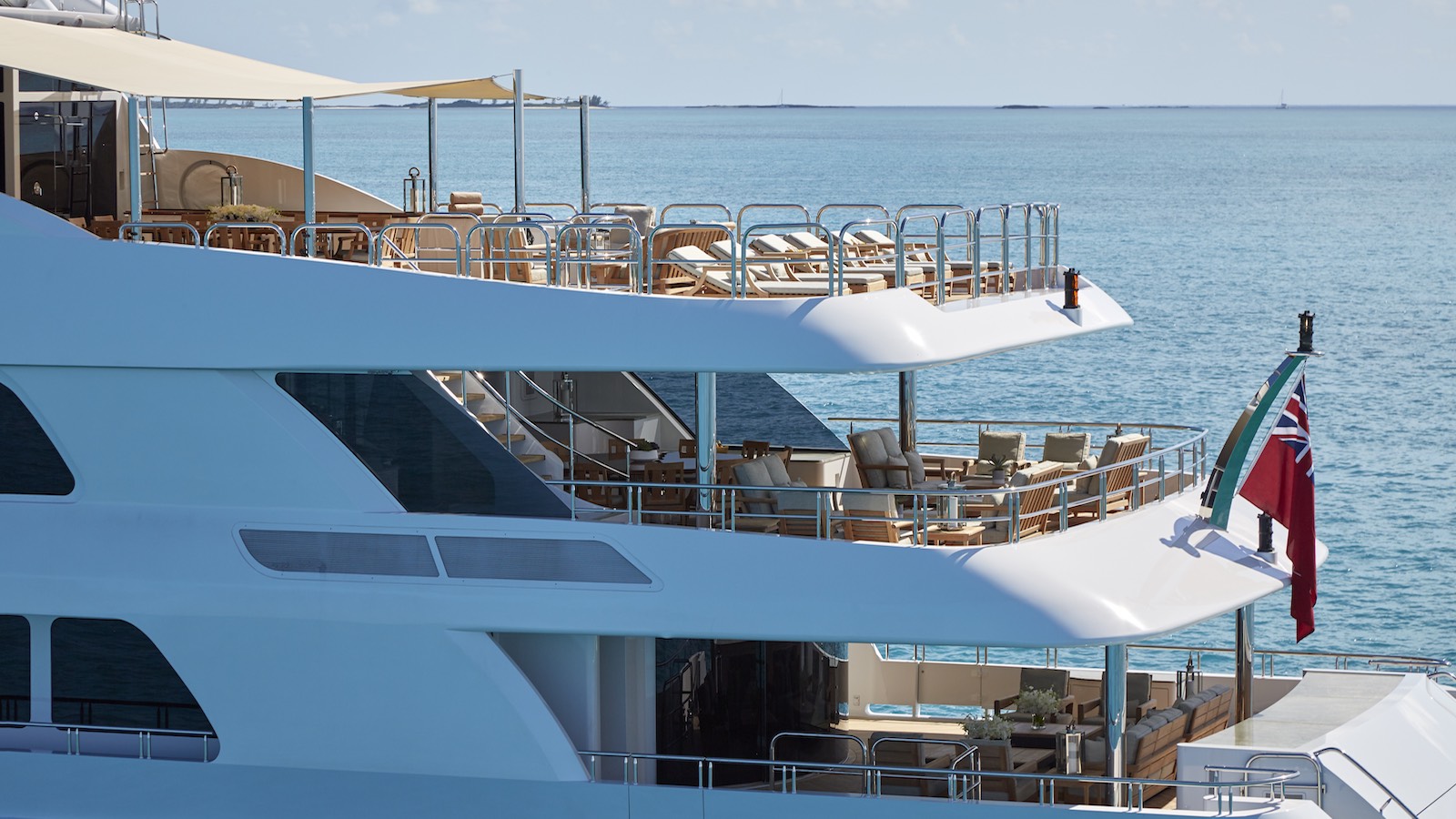 Tenders & Toys: 12.2m / 40ft Yellowfin/3 x 300 hp (towed) 8.4m / 27.5ft Novurania Chase / 295 hp 1 x RXT Sea-Doo, 1 x GTX Sea-Doo Jetski 1 x Sea-Doo Spark Jetski 1 x Jetsurf, 2 x stand-up paddle boards, waterslide, waterskis, wakeboards, towables including Big Mable, Unstable Mable, Paparazzi (3 person), Revolution (2 person spinning disc), Shark, banana 2 x single donuts, snorkelling gear, wetsuits, fishing gear 8 x bicycles (Crossover) Beach party setup: BBQ, tent, chairs and tables Not offered for charter to US residents while in US waters. Audio Visual Equipment and Deck Facilities: DirecTV (USA), Sky TI (UK) Playstation 4 Pro with virtual reality headset (2017) Communications: Satcom & cell VSAT. Wi-Fi throughout. Cell