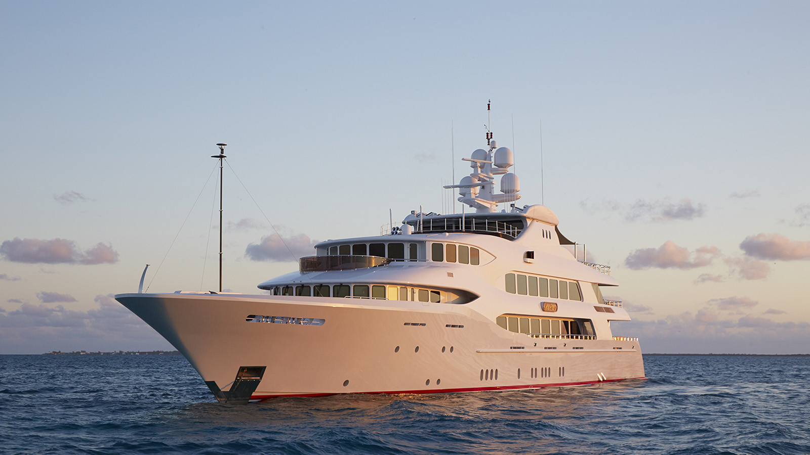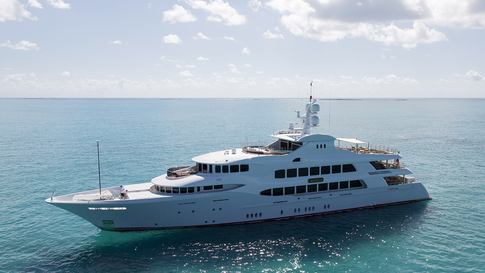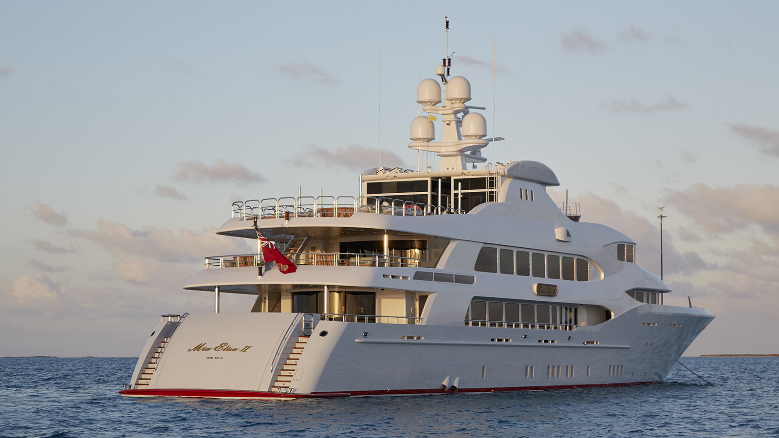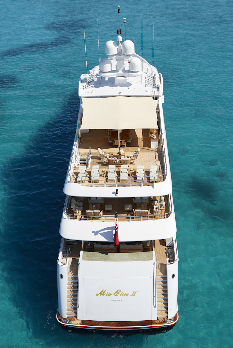 MIA ELISE II, 198 ft / 60.34 m Trinity, offers 7 ultra-luxurious en suite staterooms and an impressive variety of entertainment areas for total relaxation with family and friends. The multi-million dollar refit started with extensive work to the exterior including a paint job in 2016. In April 2017, MIA ELISE II emerged from a major interior refit transforming her decor to a stylish, contemporary look by Yacht Next in close collaboration with the yacht’s experienced owner. On deck, the expansive sundeck area aft offers dining under optional shade. An air-conditioned gym, a sauna and a steams room are located forward. Further forward is a raised large Jacuzzi with sunpads and optional shade. A wet bar is also located in this area. Alfresco dining is also available on the skylounge aft deck. Spacious lounging areas for conversation and cocktails are found on all 3 aft decks. The interior features high ceilings, exotic woods and exquisite marble in a pleasing combination complemented by custom furnishings and artwork. The main deck is open plan with the formal dining area is forward of the large main salon. A large circular bar is found in the aft foyer of the salon. The main foyer forward of the dining area features an elevator and grand central staircase leading to the bridge deck skylounge furnished with seating to starboard and a game table and wet bar to port. The full-width master stateroom with king bed is located forward on the bridge deck with oversized windows and full length glass doors to the suite’s private terrace forward with a sunbed. The master suite his/hers bathrooms are lavishly appointed. The adjoining private study aft can be converted to a 7th en suite stateroom. The VIP queen stateroom is also located on the bridge deck. Below, 4 beautifully appointed staterooms (3 king beds + a stateroom with a double, single and a pullman berth) provide deluxe accommodation for additional guests. With a cruising speed of 16 knots, MIA ELISE II offers comfort with stabilization both underway and at anchor. The beach club on the stern offers easy access to the watersport toys and tenders. MIA ELISE II's experienced crew of 15 will anticipate your every need and assure a luxury yachting experience that is second to none.