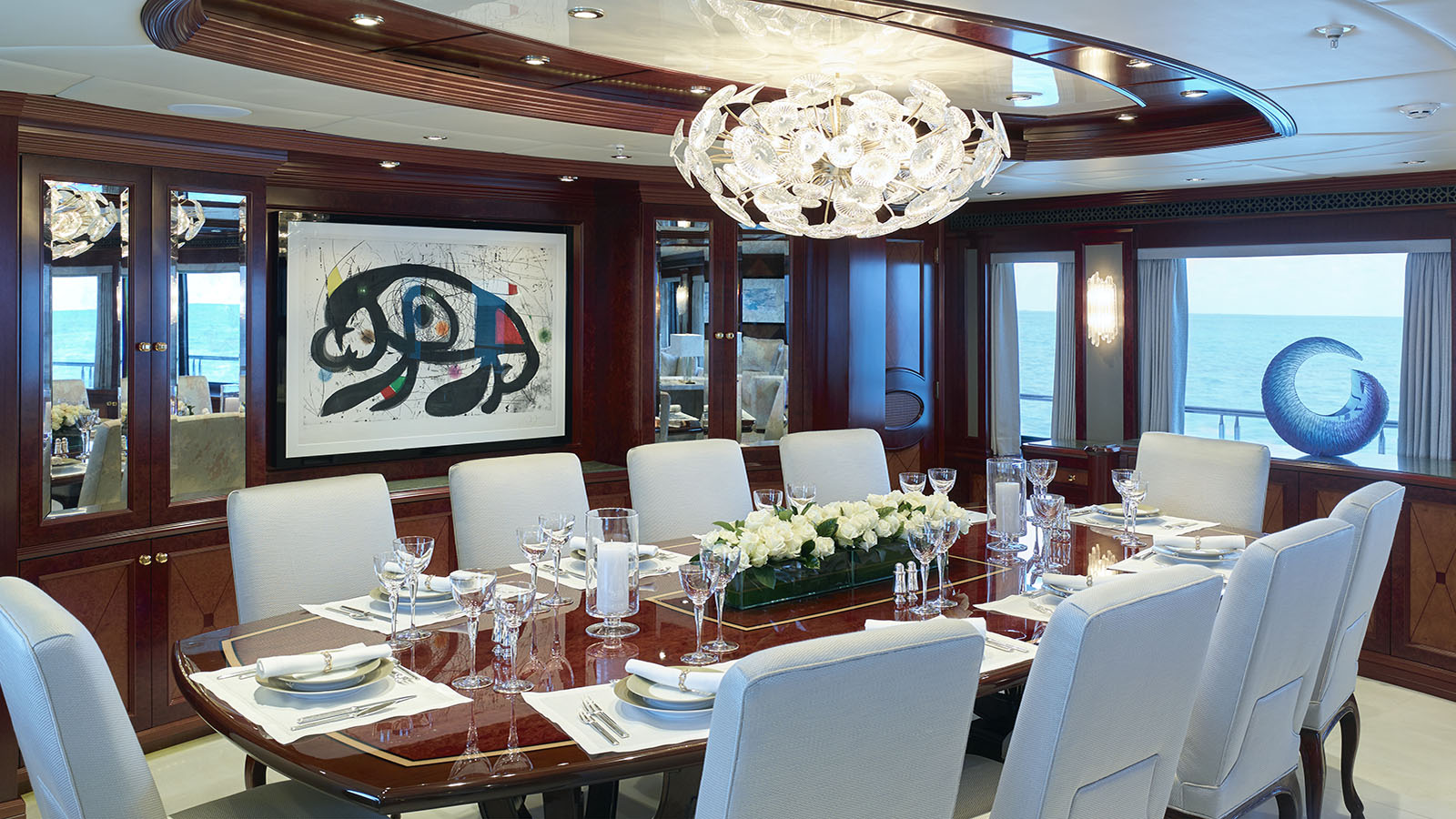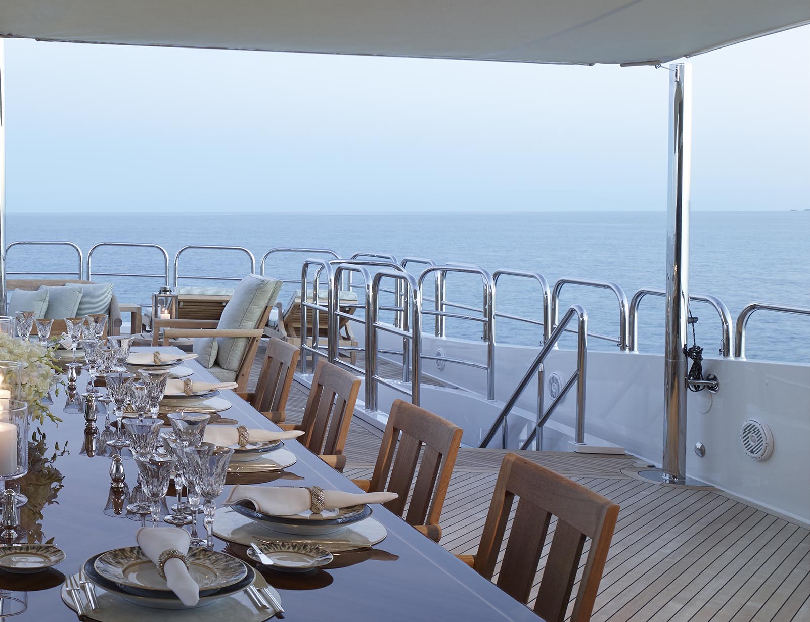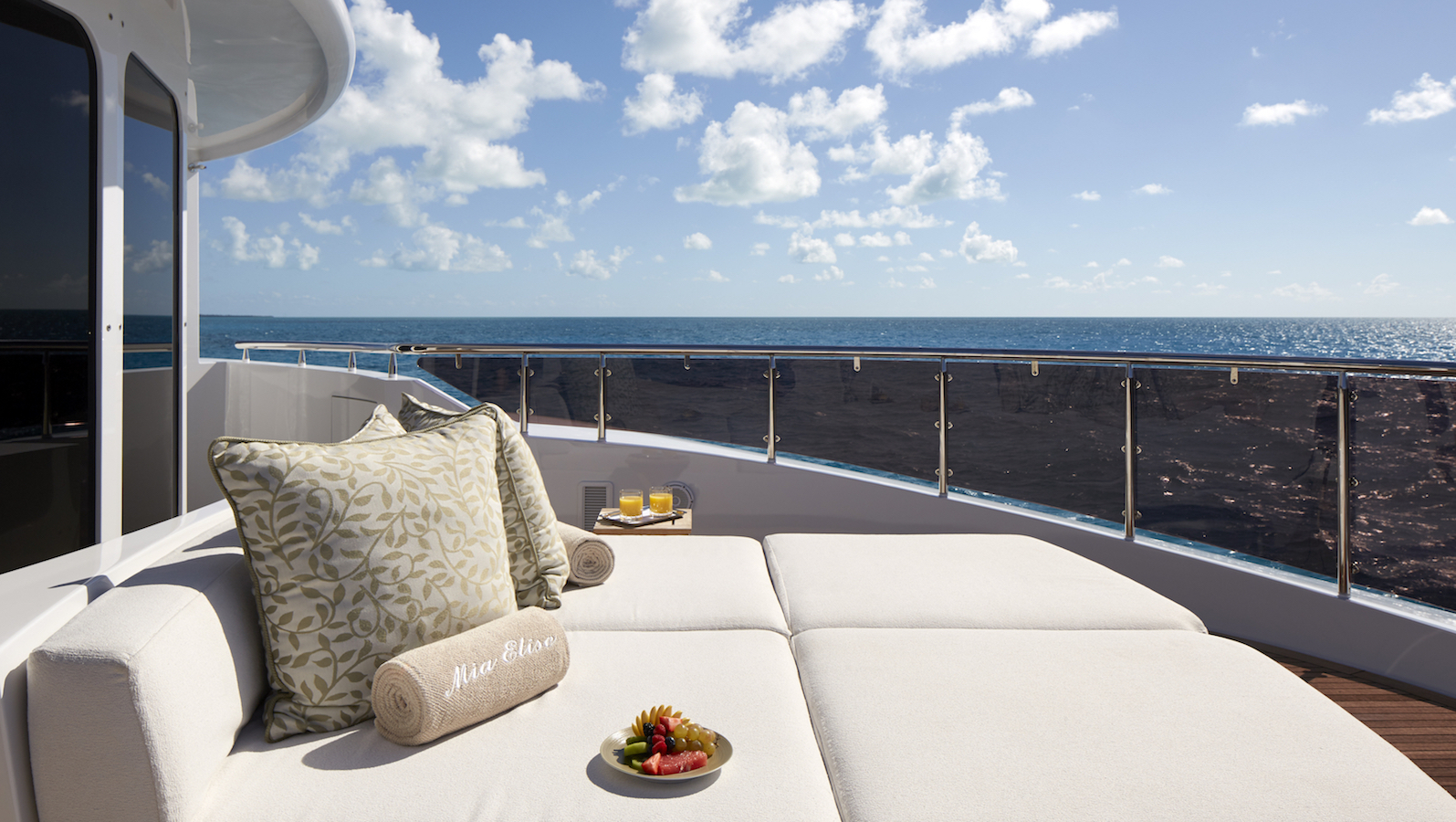MIA ELISE II, 198 ft / 60.34 m Trinity, offers 7 ultra-luxurious en suite staterooms and an impressive variety of entertainment areas for total relaxation with family and friends. The multi-million dollar refit started with extensive work to the exterior including a paint job in 2016. In April 2017, MIA ELISE II emerged from a major interior refit transforming her decor to a stylish, contemporary look by Yacht Next in close collaboration with the yacht’s experienced owner. On deck, the expansive sundeck area aft offers dining under optional shade. An air-conditioned gym, a sauna and a steams room are located forward. Further forward is a raised large Jacuzzi with sunpads and optional shade. A wet bar is also located in this area. Alfresco dining is also available on the skylounge aft deck. Spacious lounging areas for conversation and cocktails are found on all 3 aft decks. The interior features high ceilings, exotic woods and exquisite marble in a pleasing combination complemented by custom furnishings and artwork. The main deck is open plan with the formal dining area is forward of the large main salon. A large circular bar is found in the aft foyer of the salon. The main foyer forward of the dining area features an elevator and grand central staircase leading to the bridge deck skylounge furnished with seating to starboard and a game table and wet bar to port. The full-width master stateroom with king bed is located forward on the bridge deck with oversized windows and full length glass doors to the suite’s private terrace forward with a sunbed. The master suite his/hers bathrooms are lavishly appointed. The adjoining private study aft can be converted to a 7th en suite stateroom. The VIP queen stateroom is also located on the bridge deck. Below, 4 beautifully appointed staterooms (3 king beds + a stateroom with a double, single and a pullman berth) provide deluxe accommodation for additional guests. With a cruising speed of 16 knots, MIA ELISE II offers comfort with stabilization both underway and at anchor. The beach club on the stern offers easy access to the watersport toys and tenders. MIA ELISE II's experienced crew of 15 will anticipate your every need and assure a luxury yachting experience that is second to none.