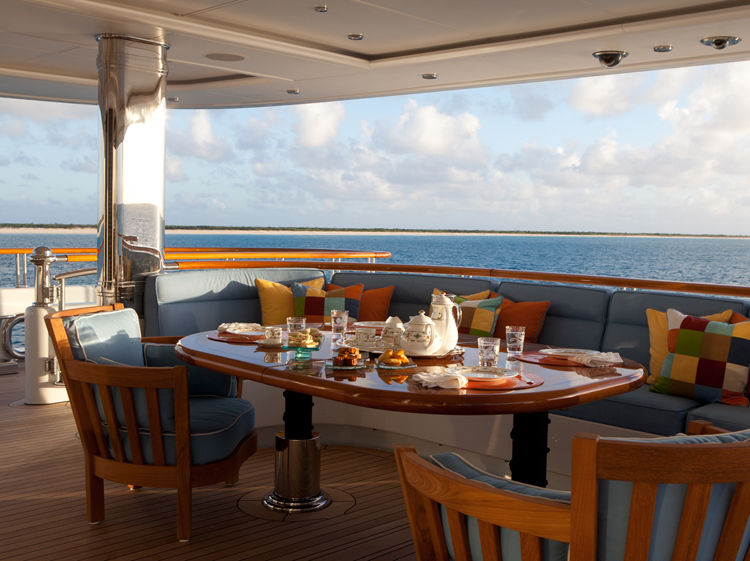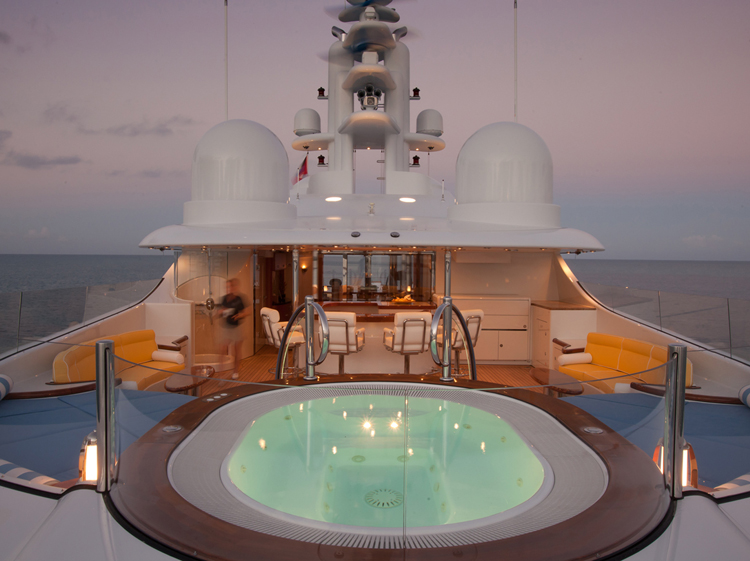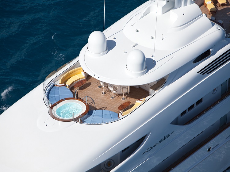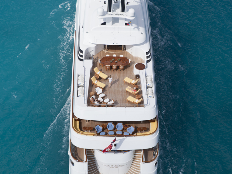 One of the most highly regarded charter yachts; Oasis offers accommodation for up to 12 guests. With a full width master suite with its own Jacuzzi and five generous guest cabins, there is no shortage of spacious living space. Innovative design features and luxurious details. Notable features include the open-air sundeck with built-in bar – ideal for relaxation by day, open-air dance floor by night. A Jacuzzi and barbecue area, Steinway piano, professionally equipped gymnasium with on board personal trainer and alfresco cinema screenings are other stand-out features. The impressive three tier exterior is elegantly contrasted with a traditional beach house styled interior, adorned with crisp linens, cashmere, silk carpets and marble. Led by one the most highly experienced Captains in the charter industry, a dedicated and enthusiastic crew of 15 ensure every stay on board is unforgettable. A fleet of tenders, jet skis and Sea Bobs, Oasis’ extensive selection of water toys include a Laser dinghy, kayaks, paddleboards, kite surf equipment, Segways to name but a few.