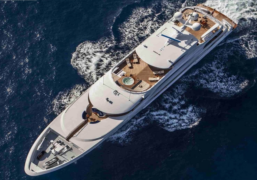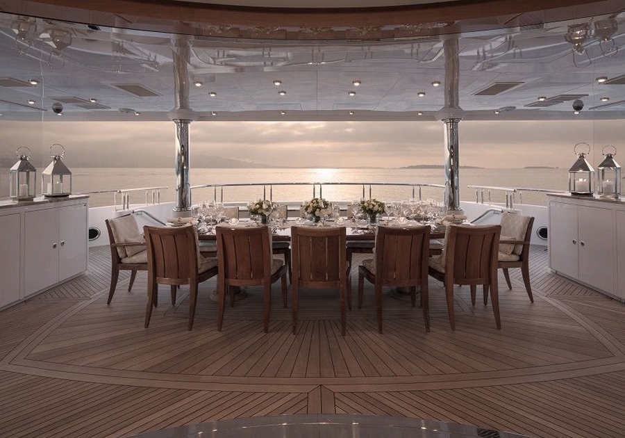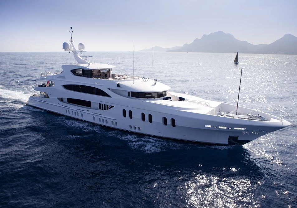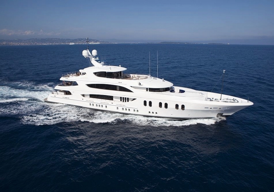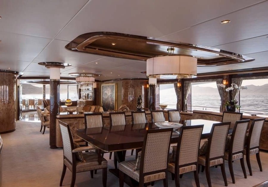 Designed by Geoff Van Aller, Lady Sara was built in aluminium by US yard Trinity Yachts to ABS class and delivered in 2012. A voluminous interior in fine marbles and stone by Evan K Marshall accommodates 12 guests in six cabins consisting of a main deck master suite, four identical double suites and a twin, all with entertainment centres, television screens and marble en suite bathroom facilities. Also, there is accommodation for 13 crew in seven cabins aboard this yacht for sale. the-trinity-motor-yacht-lady-sara-is-currently-offered-for-sale Lady Sara is asking $36 million The main saloon lounge area has a full service bar immediately aft with five bar stools, while comfortable relaxation is provided by two settees and loose armchairs along with a low cocktail table. Forward is a formal dining area seating 12 guests, separated from the lounge by a low polished stone top buffet concealing an entertainment centre with a 42 inch Hitachi television screen on a rise and fall mechanism. The full beam sky lounge has a U-shaped wet bar forward with a polished stone top and is furnished with settees and cocktail tables along with an entertainment centre including a 42 inch Sharp television screen and a Kaleidescape system delivering on-demand audio and video throughout the yacht. The sundeck is finished with teak decking and offers a large Jacuzzi forward with an open sunbathing area further aft complete with four chaise lounges. Next aft is a semi-enclosed bar with a fridge, icemaker and liquid propane gas barbecue, all under a hard top. Twin 3,384hp Caterpillar diesel engines give her a cruising speed of 14 knots and a range of 2,560 nautical miles.