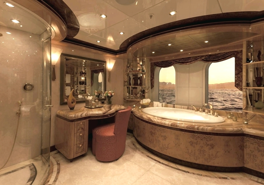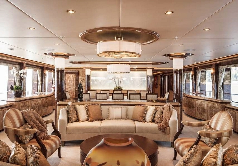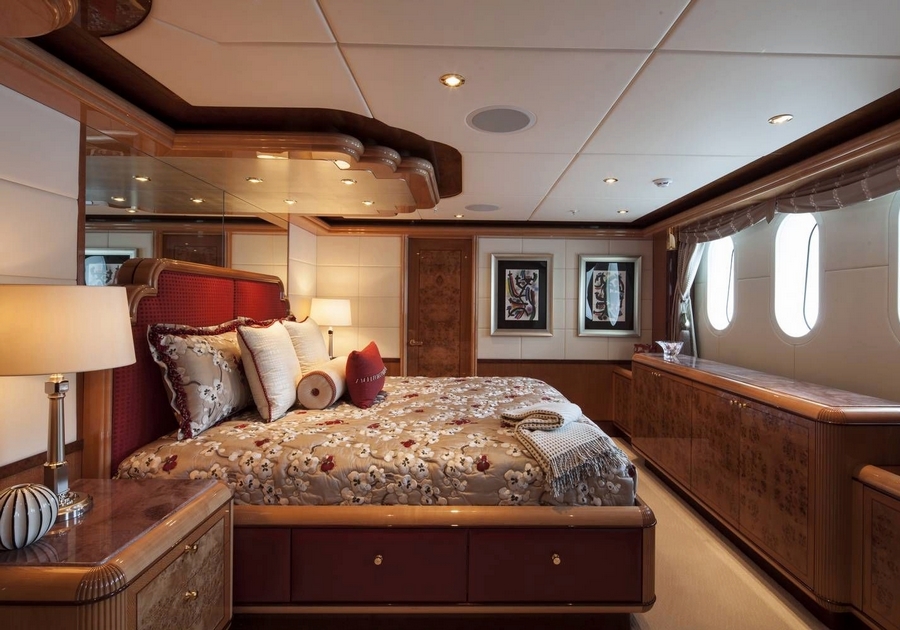 LADY SARA was designed with considerable superyacht experience. Her exceptional volume offers endless scope for gracious living and entertaining. The rich designed interior features Italian marbles and stone, Lalique glass panels and silk carpet. Birch, vavona and popular burl cabinetry establish an invitation to opulence. MAIN DECK Full Beam MASTER. Beautifully laid out featuring a KING bed; huge His and Hers bathrooms plus private office all with large windows. BRIDGE DECK with QUEEN bed, ensuite with shower.**** Guest accommodation deck contains 4 KING staterooms all ensuite with shower. ****Bridge deck stateroom houses a queen-sized Murphy bed that can be converted to a gymnasium or massage room if required.