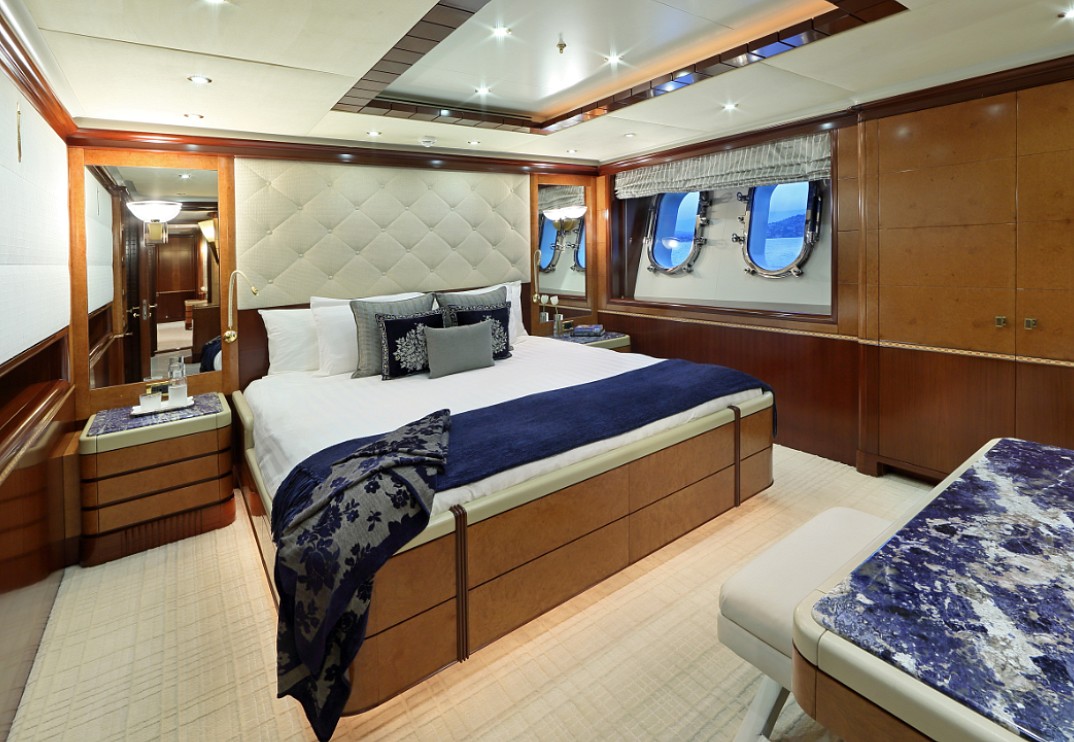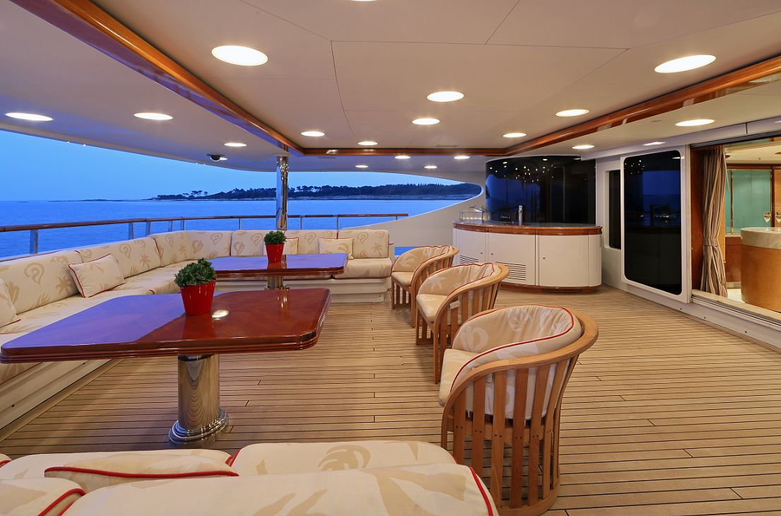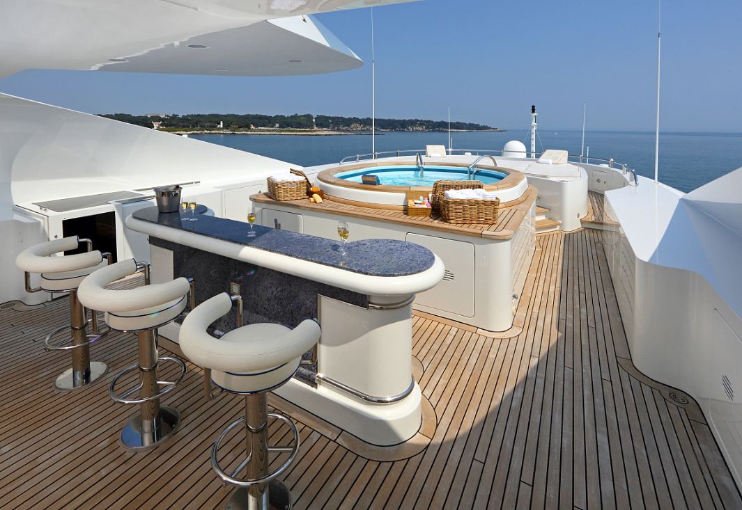 Jaguar was designed by Stefano Natucci and built by the Benetti yard in 2005 to Lloyd’s class and MCA compliant. She has an interior designed by François Zuretti, and can accommodate up to 12 guests in a master, VIP, two doubles and two twins plus two Pullman berths. Zero speed stabilisers have been installed and she had an extensive refit and upgrades in 2009. This oustanding Benetti has been updated and modified to surpass her condition when she was originally launched. Jaguar has a split level master suite with private access to the foredeck and a VIP cabin on the sky lounge deck. She has one of the largest upper sun decks with a swimming pool and spa pool.