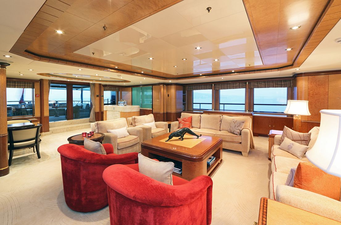 Jaguar was designed by Stefano Natucci and built by the Benetti yard in 2005 to Lloyd’s class and MCA. She has an interior designed by François Zuretti, and can accommodate up to 12 guests in a master, VIP, two doubles and one twin plus two Pullman berths. Zero speed stabilisers have been installed and she had an extensive refit and upgrades in 2009. This oustanding Benetti has been updated and modified to surpass her condition when she was originally launched.Jaguar was built with a split level master suite with private access to the foredeck, and the VIP cabin on the sky lounge deck. She has one of the largest upper sun decks with spa pool.