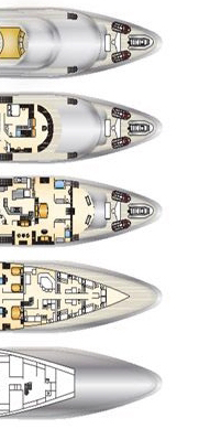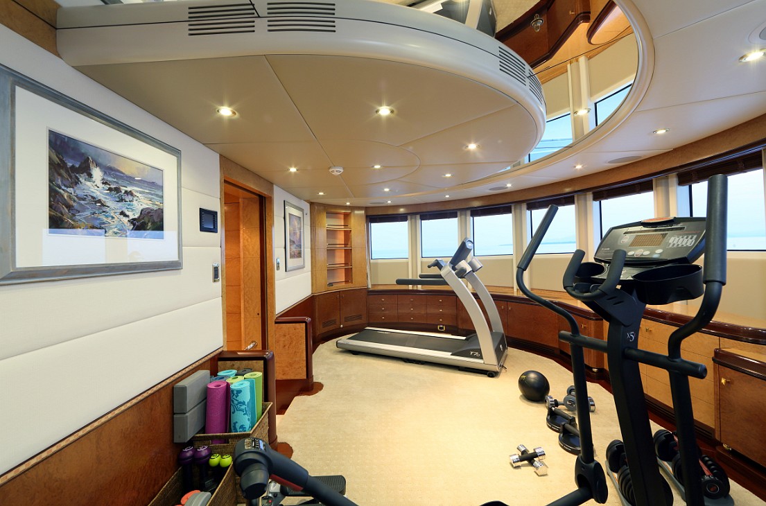 Tenders & Toys: TENDERS & TOYS: 37' Intrepid w/3 x 300hp Yamaha Outboards built in 2017 Tender Master Craft XT20 (Ski/Wake Surf) built in 2017 1 x Yamaha stand up Jet ski 2 x Yamaha FX SVHO Wave Runners 1 x 2016 Jet Surf 1 x Fly Board 3 x Kayaks 2 x Paddle Boards 2 x Wake Boards 4 x Wake Surfs 2 x Water Skis Snorkeling & Fishing Gear Towable Big Mable/Inflatable Toys Scuba Diving Equipment Audio Visual Equipment and Deck Facilities: The Video Entertainment system is as follows: TVs are located in the following areas: Sundeck: 47” TV; Sky lounge aft exterior deck: 50” TV; Sky lounge: 62” Plasma Screen TV, VIP Stateroom: 37” TV, Main salon: 50” TV, Main entrance: Audio only, Master stateroom: 50” TV, including a 42” TV in the master private room & a 50” TV in the master Study, each of the lower guest staterooms has 42” TV. The crew has two 37” in the crew mess & 19” in each crew cabin. Each TV is fed by a Sat Video signal & a signal from a DVD on Demand - Kaleidescape server. All Control is accomplished by Crestron Control processors as a back bone to the system. A series of Crestron 2000 & 1000 wall mount Multi Function displays, and portable iPad remotes in each room can be used as input devices. Sat TV system includes a Sea Tel dish system with multi LMBs. DVD on demand is accomplished by a pair of zone 1 & zone 2 Kaleidescape. Kaleidescape hard drive processors allow more than 600 DVDs or 12,000 CDs to be stored & distributed. Each TV has a Cat 7 enhanced cable. Control is accomplished by the Creston processors system interface. Kaleidescape server On Demand system for audio/visual systems. GYM: The gym equipment is located in the observatory deck in the master stateroom: - Life Fitness Runner - 2014 Elliptical Machine - Free Weights - Yoga Matts - Training DVDs Communications: Communication Systems: SATcom: (1) Mini-M InmarSat system (1) F-77 InmarSat system lines Telephone System: Commercial Panasonic PBX central phone system with (36) table base phones & (38) wireless phones. Satellite Voice Systems: Iridium Sat system V Sat IP voice system module VHF: (3) Sailor type HC4000 Cellular Phone System: Tri Band Ericson GSM Cell Phones Satellite Data Systems: (1) V-SAT Sat data system connected to the ships computer network (1) Dell seamless input network system router Selection switch Sat C terminal (1) Global Yacht track system with e-mail capability