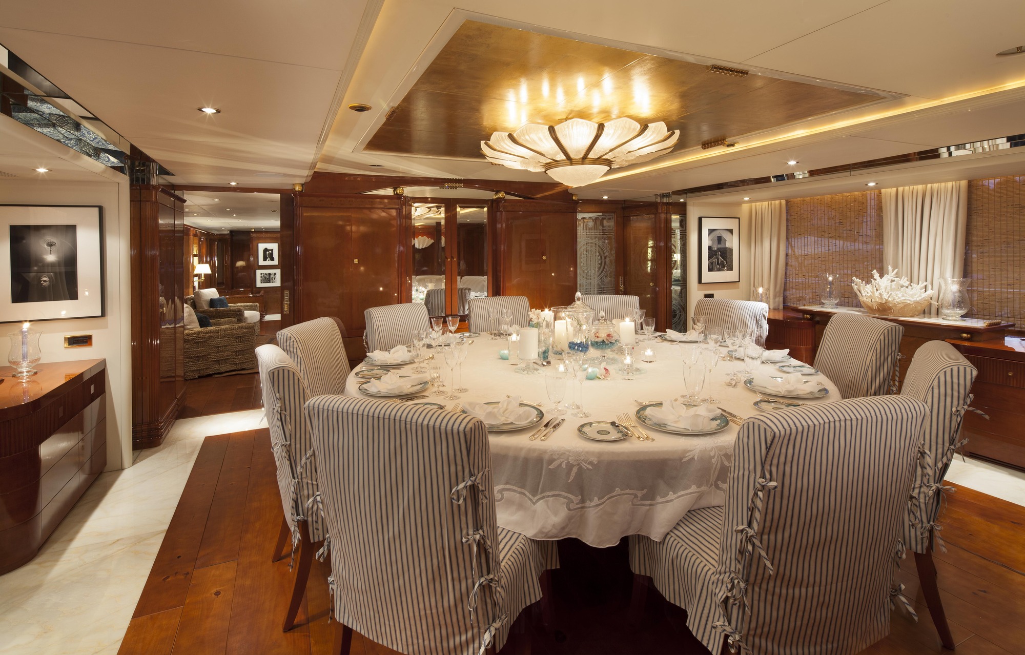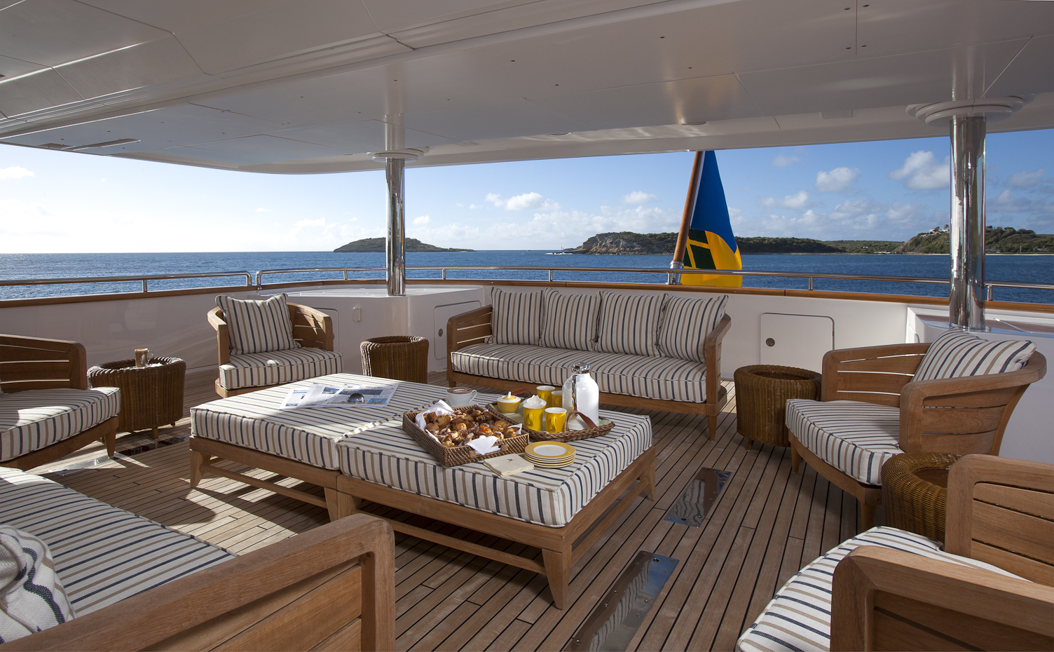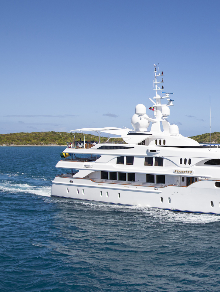 Italian-built Benetti yacht STARFIRE is 178’ (54M) in length with a beam of 31.5’ (9.6M) and a draft of 11.6” (3.5M). STARFIRE is 757 tons and has a fuel capacity of 35,000 gallons (140,000 liters). Her maximum speed is 15 knots and she cruises at 12 knots. She has a steel hull and an aluminum superstructure. Launched in 1998, STARFIRE has been through three refits in 2002, 2004 and 2012. Included in her 2004 refit was the addition of at-anchor zero speed stabilization, which is a true advancement in the yacht’s performance. STARFIRE has the latest and most technologically advanced communication system in the industry. With a new Ku-band satellite, we are now able to offer full communication while docked and at sea. This innovative system provides guests with high speed wireless internet access around the world. In addition, a state of the art audio visual system has been installed to provide the best available programming and reception no matter the destination! Along with STARFIRE’S technical advances, her 2012 refit included an interior transformation to Modern Art Deco. To better suit the owners’ style, custom furniture and exquisite fabrics were paired to create an elegant and inviting yacht. Great effort and craftsmanship were expended to insure STARFIRE’S appearance and performance are at the highest of levels. The energy that runs STARFIRE includes the Captain plus a crew of twelve vibrant professionals, with an average of 4.5 years of longevity on-board, that work in perfect unison to provide an expertly and efficiently run vessel. The overall attitude of “no problems, only solutions” is rewarded with a 90% repeat charter rate. Their esteemed guests experience a vacation of a lifetime cradled in tranquility, joy and tantalizing adventures. STARFIRE’s captain of 13 years, Carl Sputh is the “son of a son of a sailor”. His passion is sharing his love of the sea, yachting and seamless five-star service. William Wordsworth said, “the ocean is a mighty harmonist”. Experience the harmony of a STARFIRE cruise.
