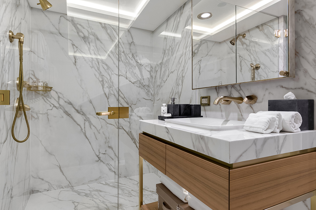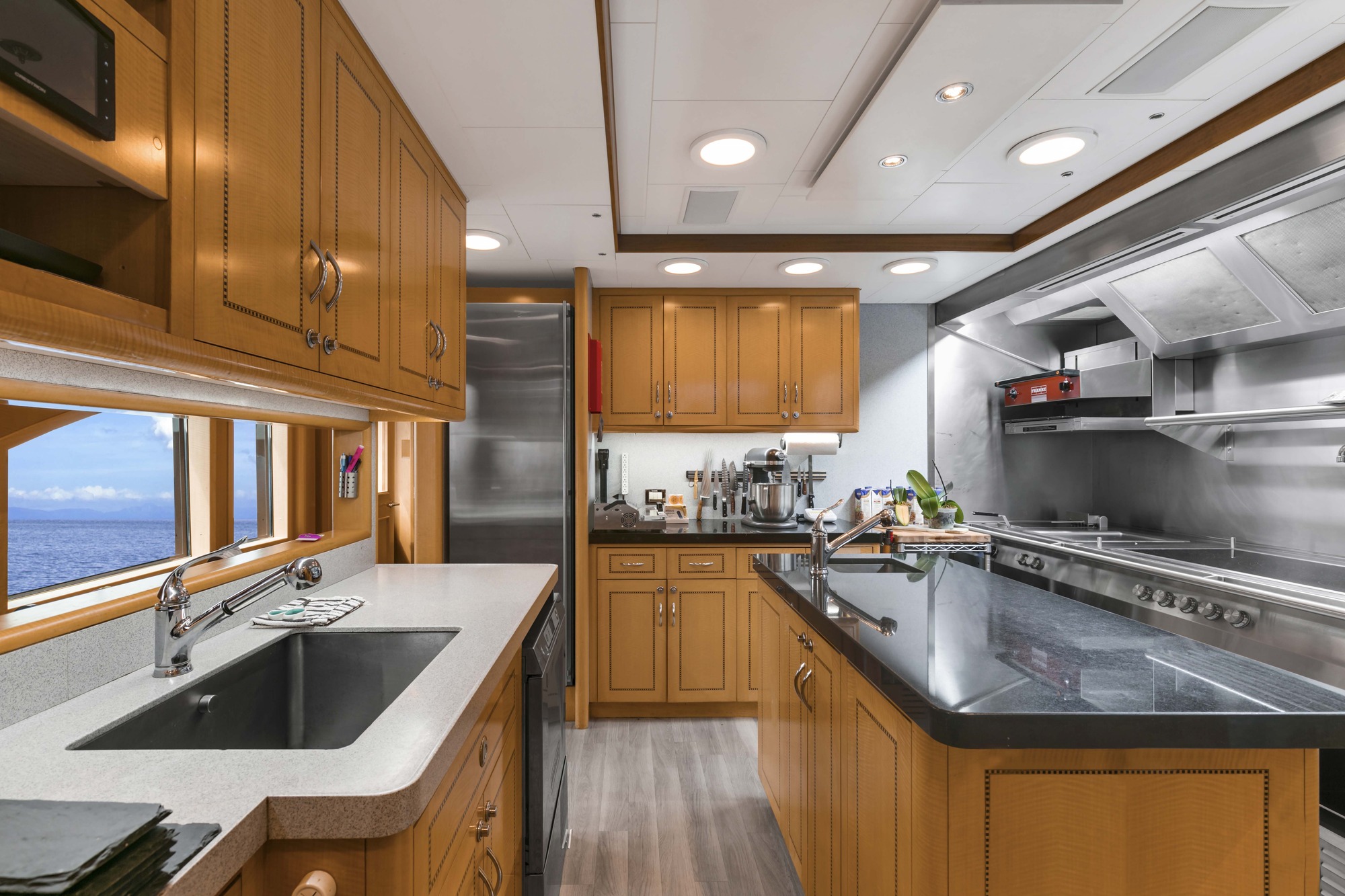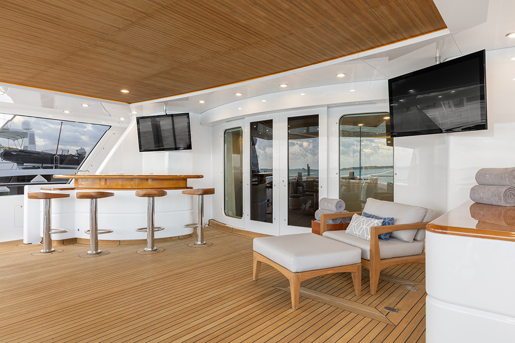 BROADWATER's entirely new interior now includes a six-stateroom layout. A beautiful and spacious Master stateroom complete with office lives on the forward region of the main deck with a VIP Queen stateroom accessible on the starboard side of the main deck as well. Four lower king sized guest staterooms are in the lower guest area. Two of which convert to single beds and two of which have additional Pullman bunks. The extensive upgrades in addition to the completely new interior included all new lighting, AV, furnishings, flooring, exterior paint and much more.