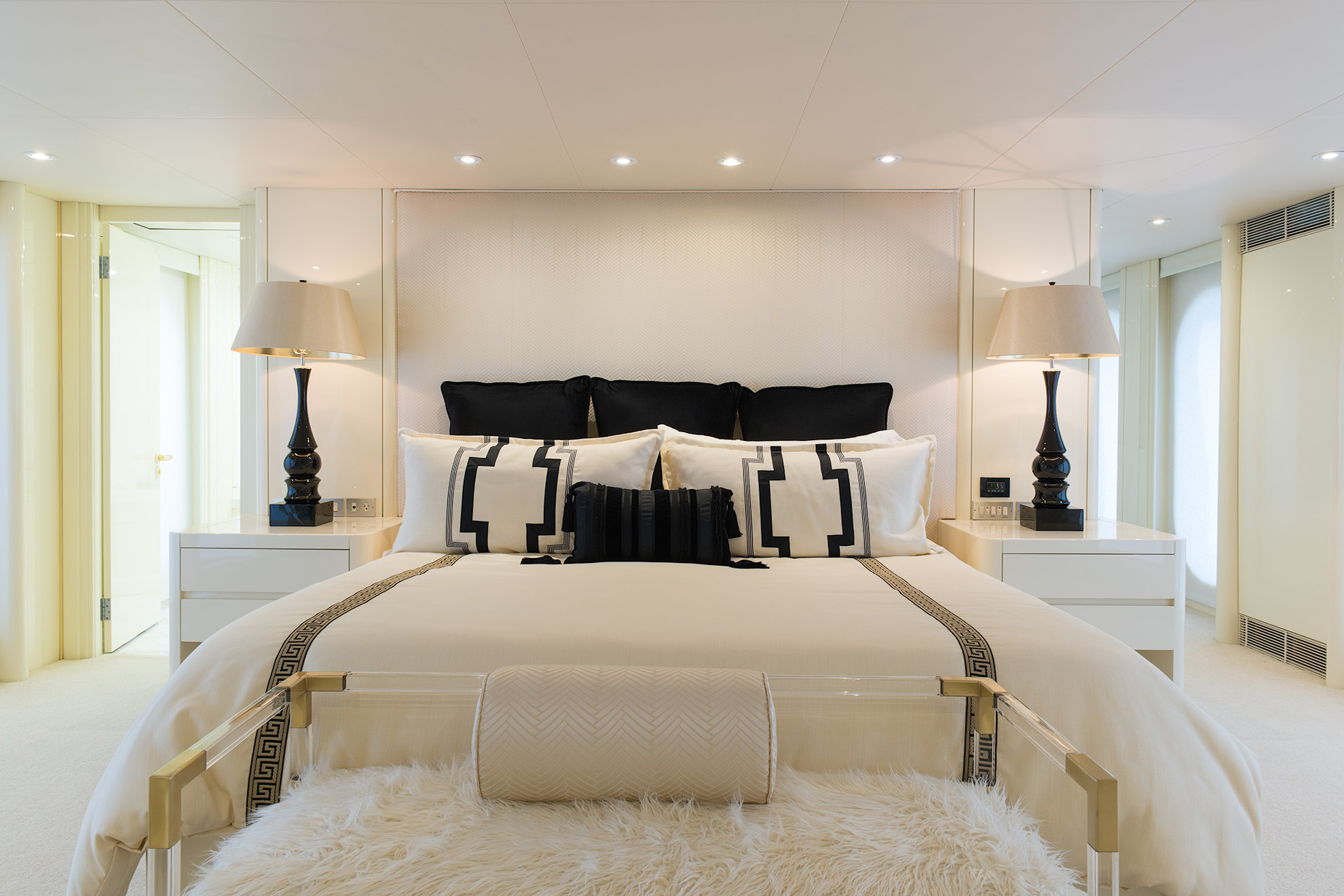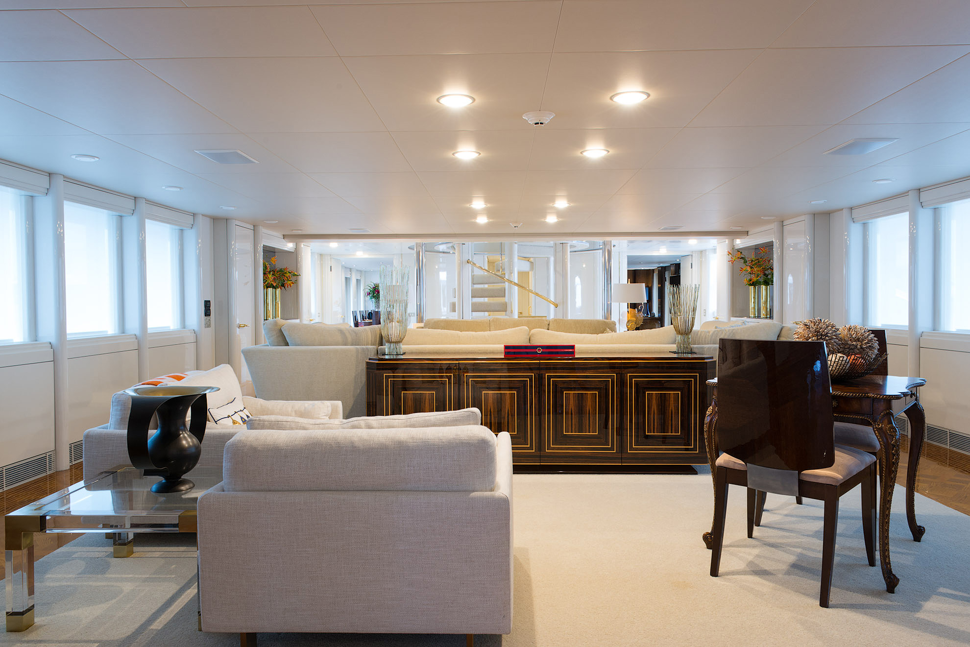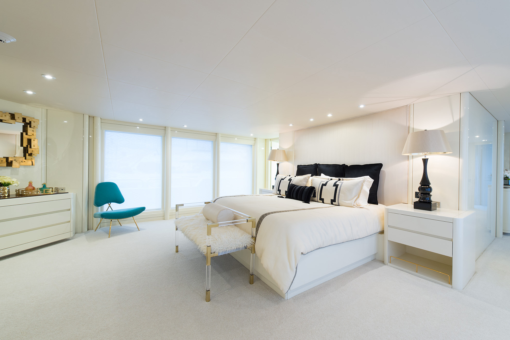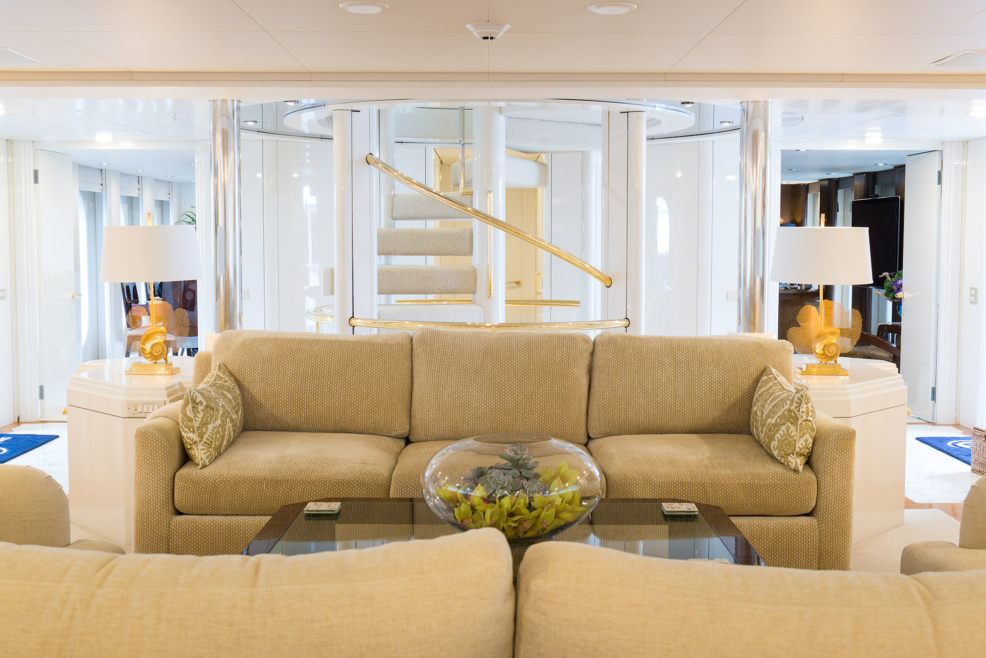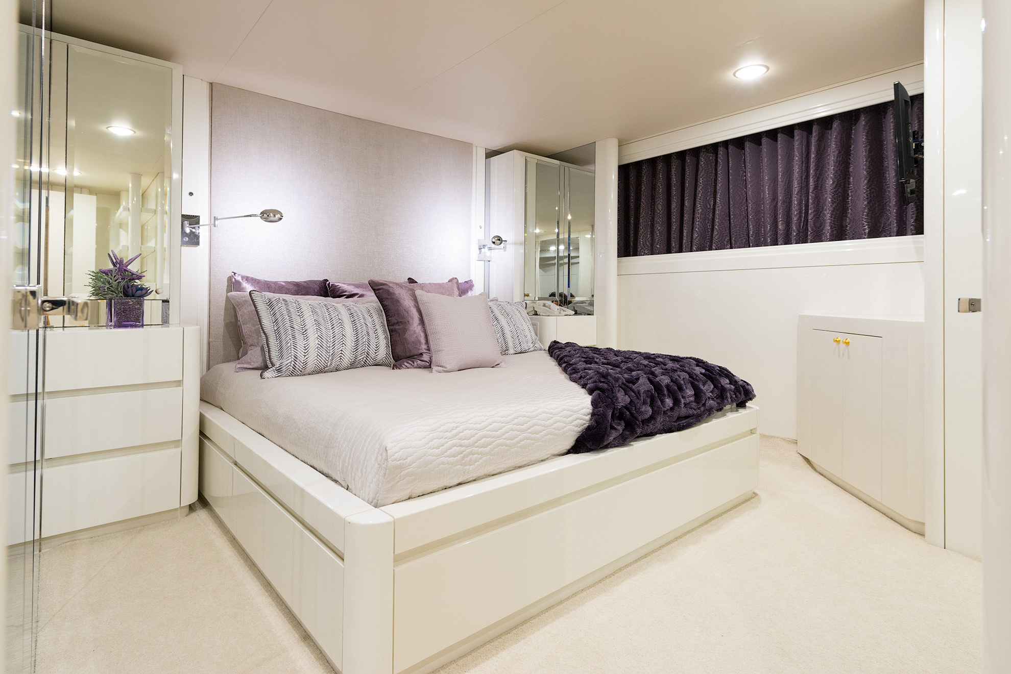 SHE'S A 10 was recently refit in 2013. The layout sleeps up to 12 guests in 5 staterooms, including a master suite on the upper deck, 2 king staterooms and 2 double cabins with additional single beds below. The multifaceted media room on the main deck also transforms into an extra guest accommodation if needed. Timeless styling, beautiful furnishings and sumptuous seating are featured throughout her living areas to create an elegant and comfortable atmosphere.