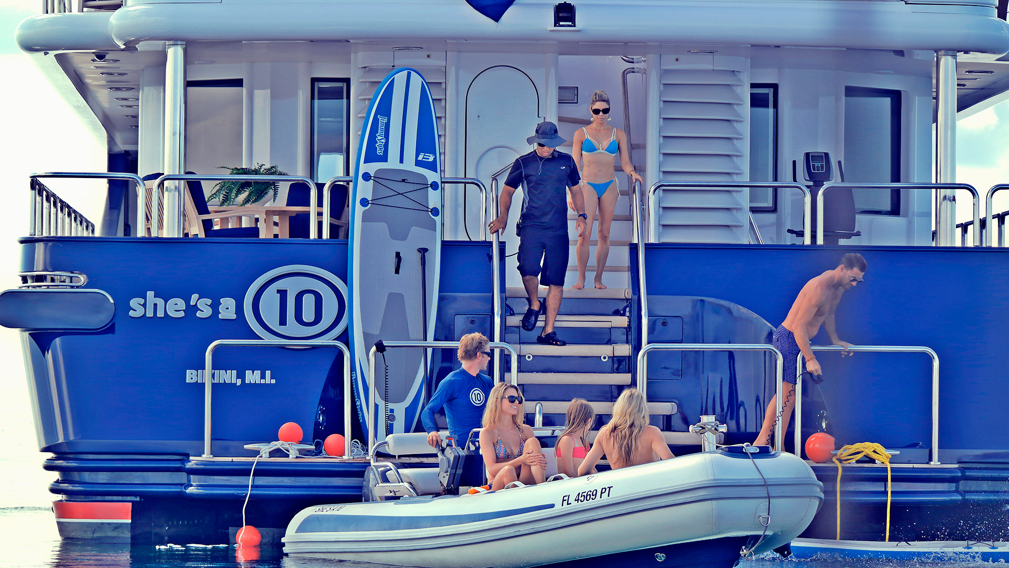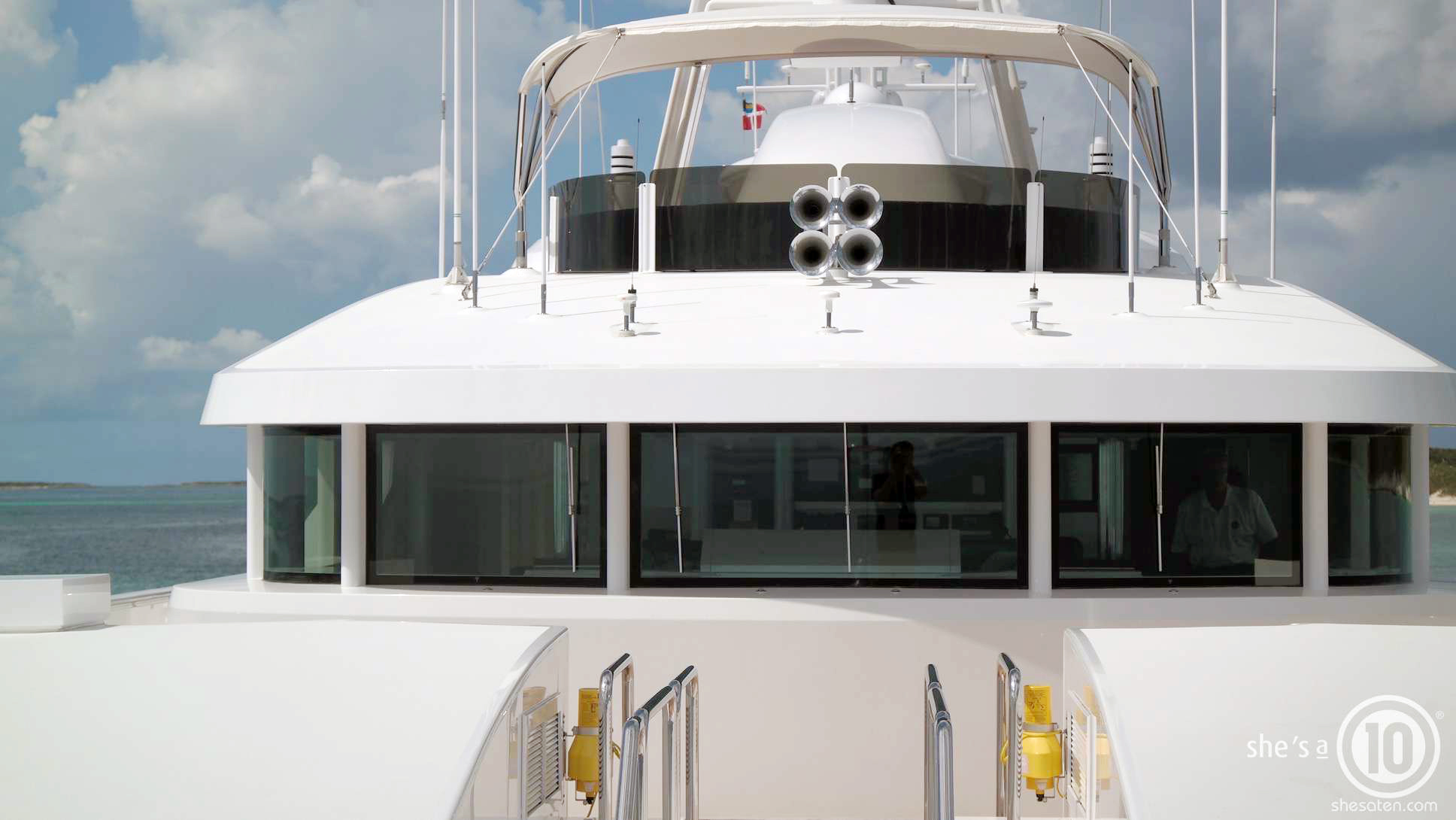 Check out the SHE'S A 10 custom website and video: http://www.shesaten.com SHE'S A 10 was recently refit in 2013. The layout sleeps up to 12 guests in 5 staterooms, including a master suite on the upper deck, 2 king staterooms and 2 double cabins with additional single beds below. The multifaceted media room on the main deck also transforms into an extra guest accommodation if needed. Timeless styling, beautiful furnishings and sumptuous seating are featured throughout her living areas to create an elegant and comfortable atmosphere.