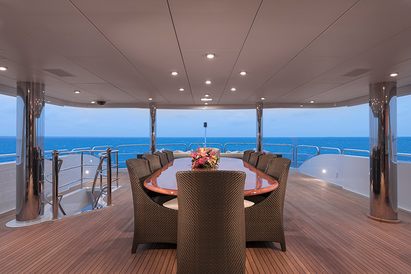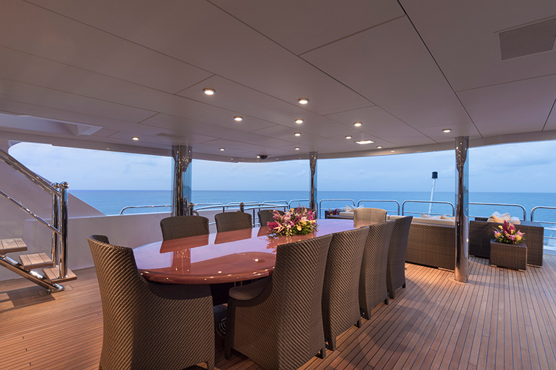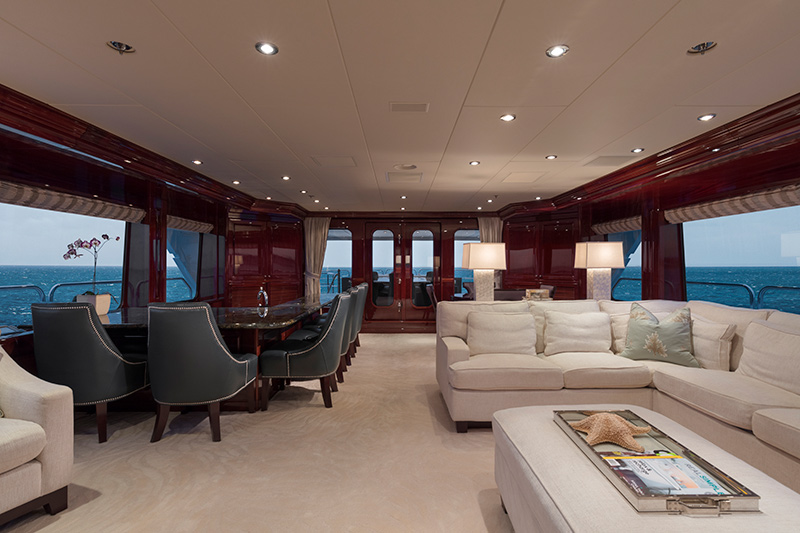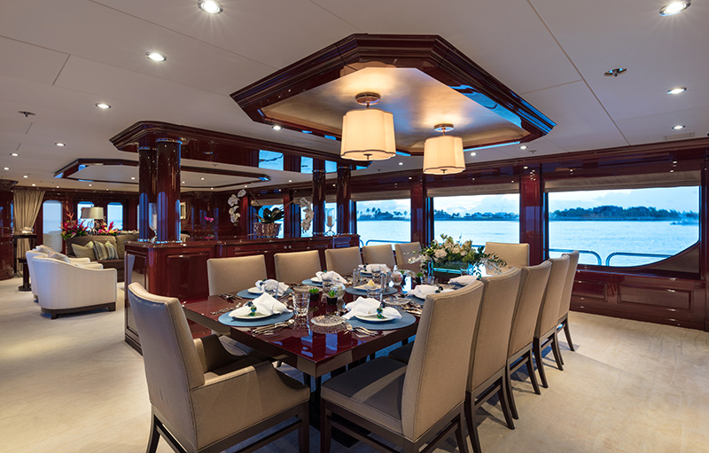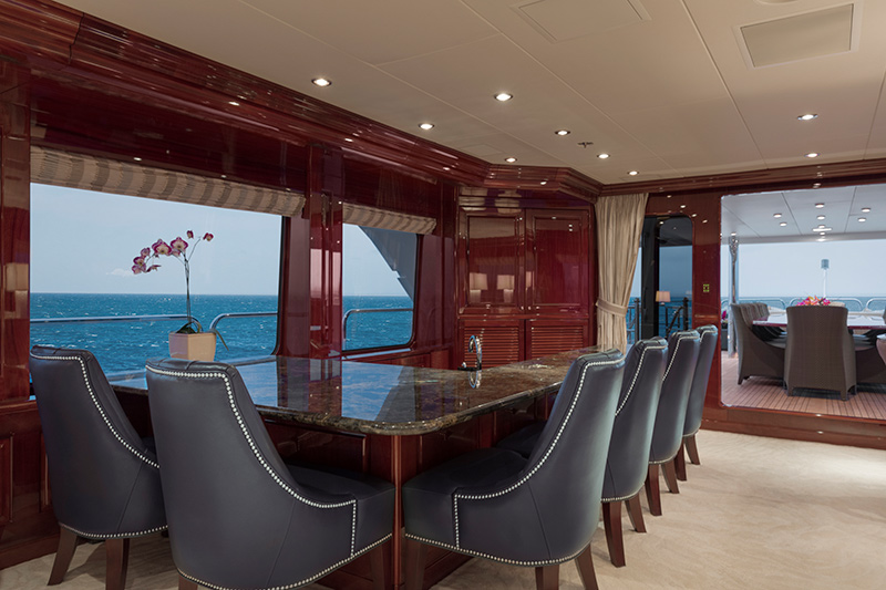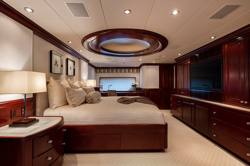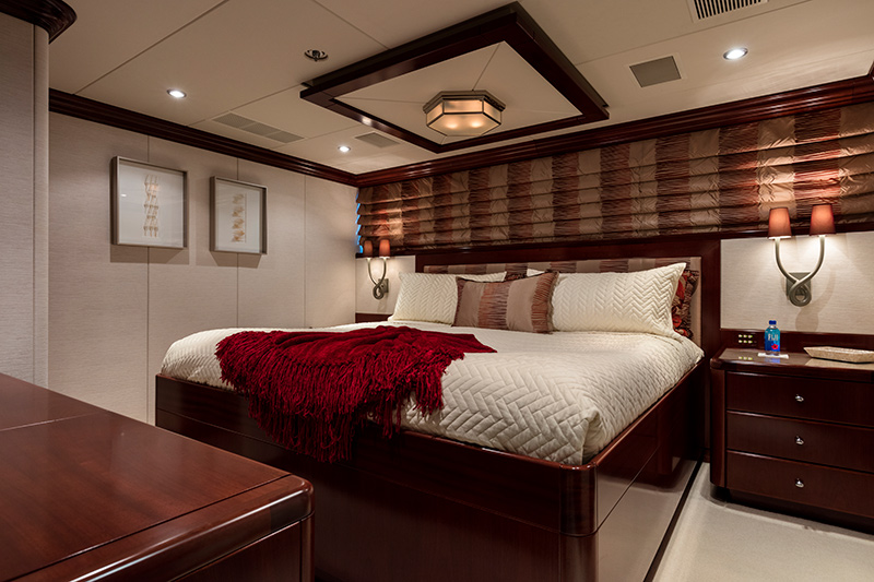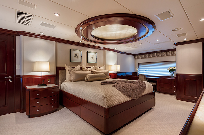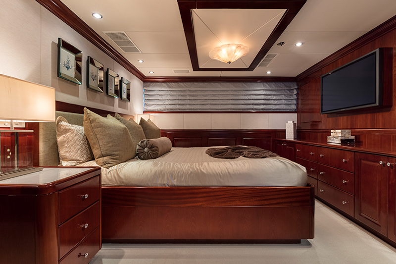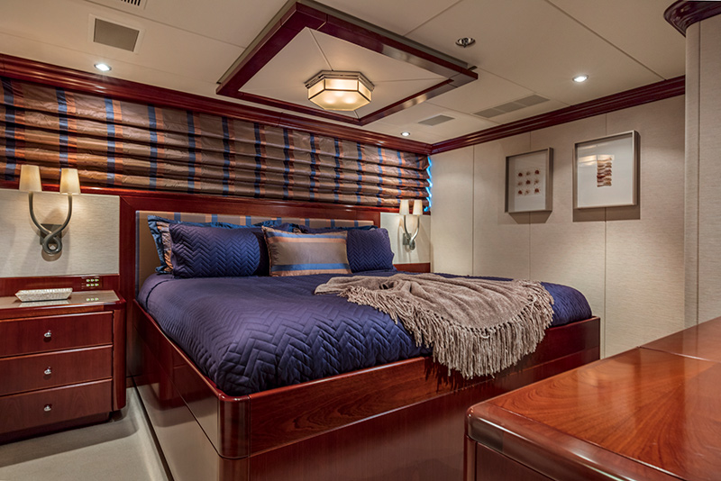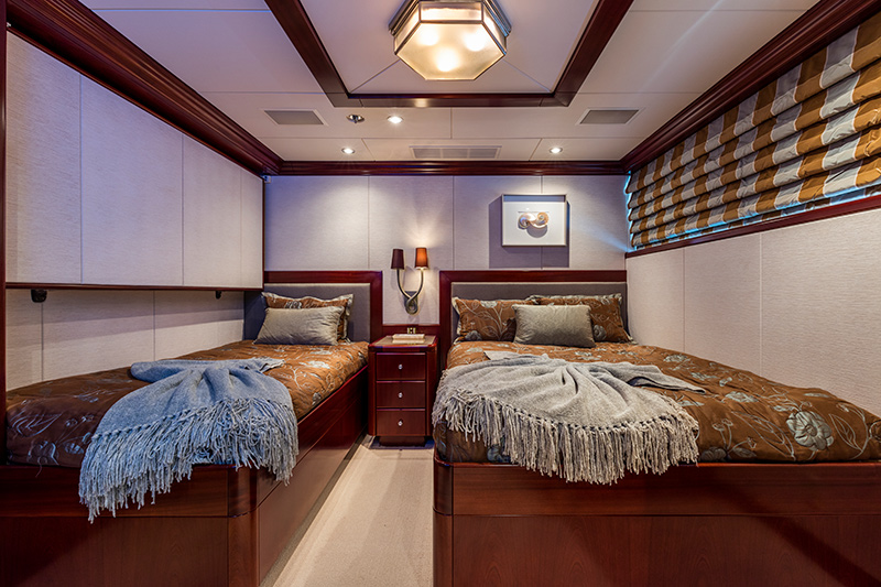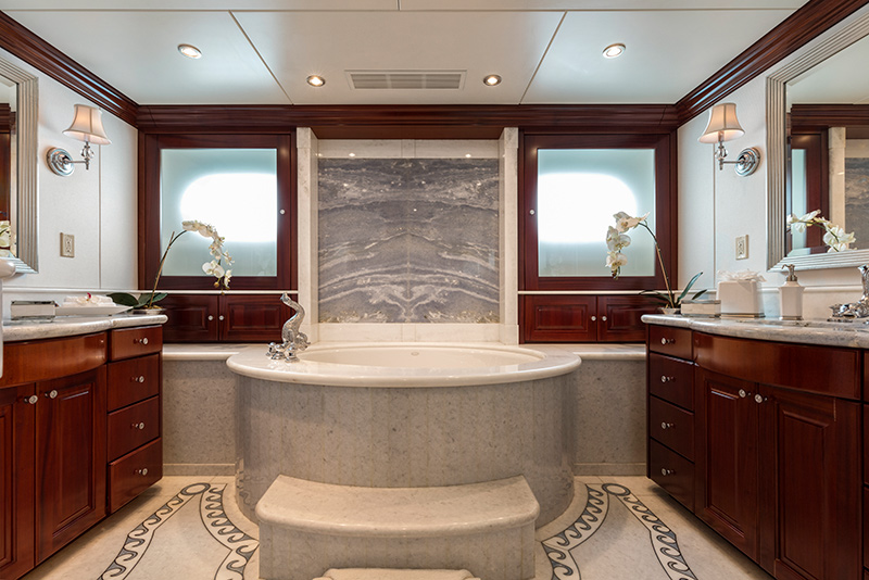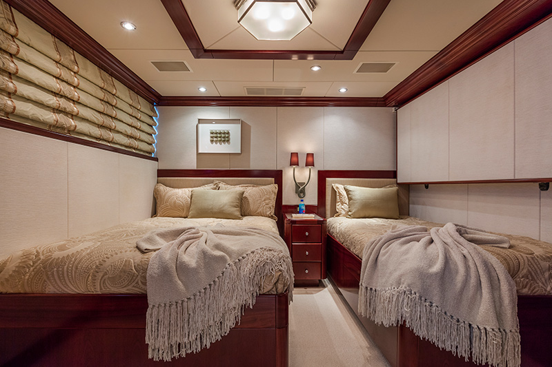 THREE FORKS can comfortably accommodate 12 guests in six staterooms. The full beam master suite is located forward on the main deck and is complete with his and hers bathroom as well as a private study. There is a full width VIP together with four guest staterooms below, all fitted with en-suite bathrooms.