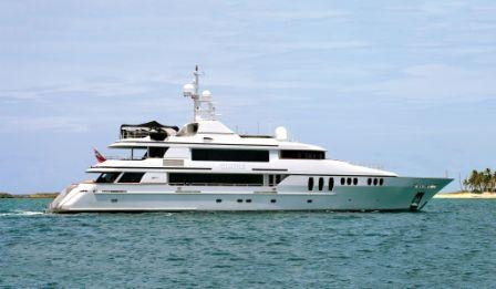 Tenders & Toys: • 32' Boston Whaler towed tender • 19' Wave tender • 40' Waterslide from the sun deck • Floating trampoline • (2) Yamaha waverunners • (2) Double Inflatable kayaks • (2) Stand Up Paddle boards • Waterskis for adults and children • Snorkeling equipment and fishing gear • Kneeboards • Wakeboards • Beach gear • Floating mat • 4-person Donut towable inflatable • The Couch towable inflatable • (2) single person Donut towable inflatable • The Island inflatable Rendezvous diving only ADDITIONAL EQUIPMENT: • Zero-Speed Stabilizers • Treadmill • Migun Massage table (Skylounge) • 24/7 WiFi throughout Audio Visual Equipment and Deck Facilities: • Kaleidoscope A/V system on demand • (4) 21" flat panel multi-system (Staterooms) • (2) 42" Plasma multi-system (Main Salon, Sky Lounge) • 32" Plasma multi-system (Master) • (10) DV 353 Pioneer DVD players (All guest and common areas) • SLV-ED 100 ME Sony multi-system (Master) • 42” Flat screen TV (Main Deck, Bridge Deck Aft) • 32” Flat screen TV (Sun Deck) • I-Pod connection in all A.V. Communications: • Fleet 77 SAT COM • Panasonic telephone system • Furuno SSB • Furuno VHF • Nokia cellular phone system • Panasonic intercom • Wireless Internet throughout 24/7