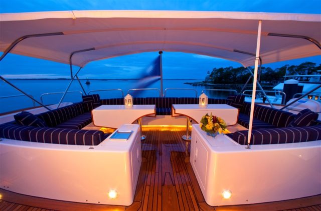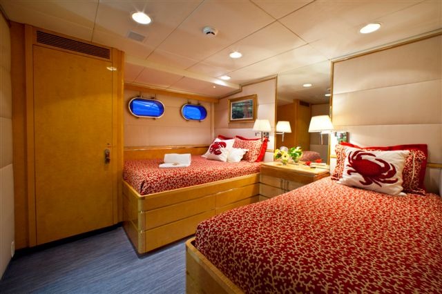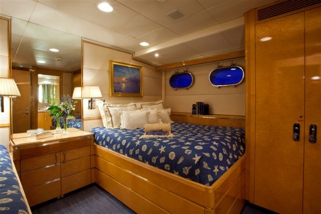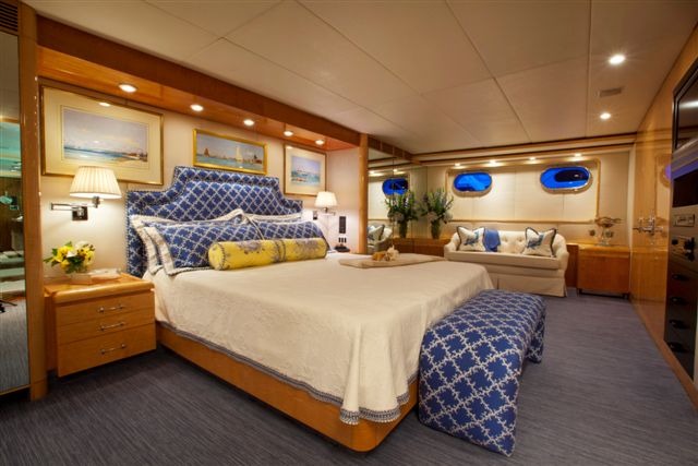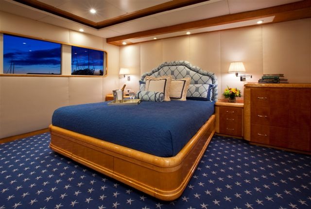 Accommodations: 10 to 12 Guests in 5 staterooms: Two kings, three doubles, three twins and two pullmans. All five staterooms have the state of the art entertainment centers including, DVD, CD, satellite, WIFI and Ipod link up. All five staterooms have JACUZZI TUBS!! The master stateroom is full width below with a king size bed and Jacuzzi tub. A spacious VIP stateroom with large windows is on the main deck mid-ships. It offers a king bed and Jacuzzi tub. Below are three very large guest staterooms. Each have a private Jacuzzi tub and offer either a queen bed and a twin bed. Two rooms have a large Pullmans if needed.