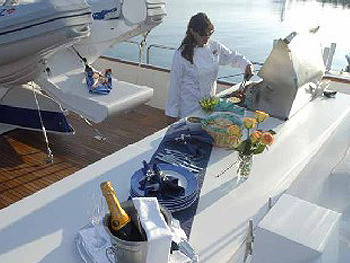 Tenders & Toys: All water equipment is sparkling new! 35” HBI Custom Yacht Limo- accocomdates 12 guests w/ twin 250hp and guest head. 17’ Nautical Catamaran landing craft with 115’hp Fantastic for landing on beach. 2 Yamaha three man Wave runners (can be toned down for kids) 2 Hobbies Mirage Kayaks with optional pedal devices 1 Vanguard Zuma sailing dinghies (Race course available for the more competitive sailor) 2 Paddle boards Snorkel Gear Wake board Towing ring Water skis Tread mill Exercise bike New outrigger trolling rigs on the large tender and a complete new set of Shimano light tackle (2x20lb and 2 x 30lb) Rod and reel sets And anything else one requires! Audio Visual Equipment and Deck Facilities: One of RENA's greatest virtues are her many and varied outdoor living area, from her bi-level sundeck to her aft deck dining and two for deck seating areas. Comfortable sun deck with seating and dining Inviting lower aft deck built in settee Surround sound system through out the vessel. DVD and CD player in the main saloon and in each stateroom. BBQ on sun deck Treadmill Exercise bike Communications: Nera Mini M Satcom WIFI Through out vessel Ericsson GSM Cell phone Printer/ Fax/ Copy/ Scanner Ipod friendly