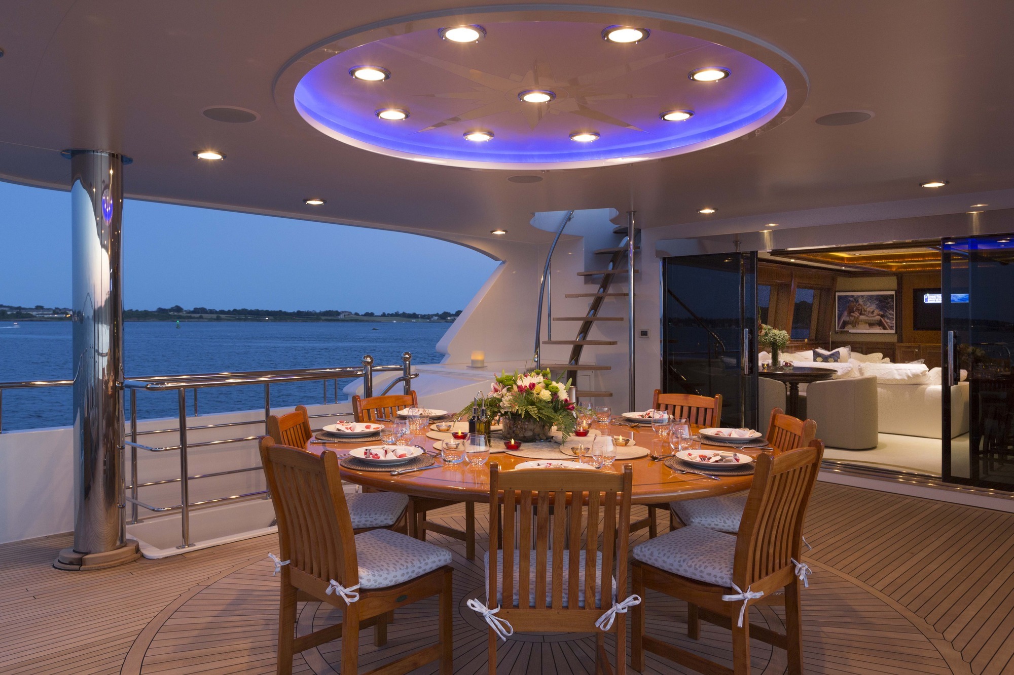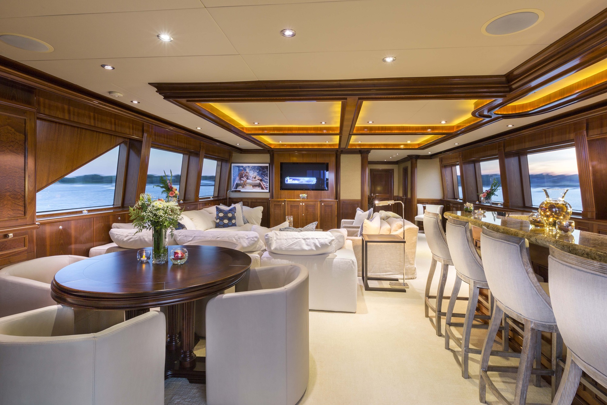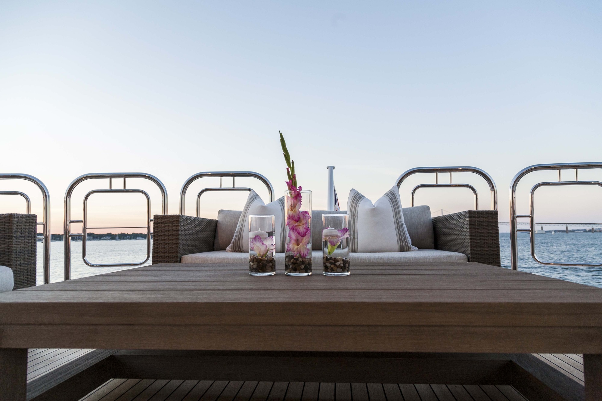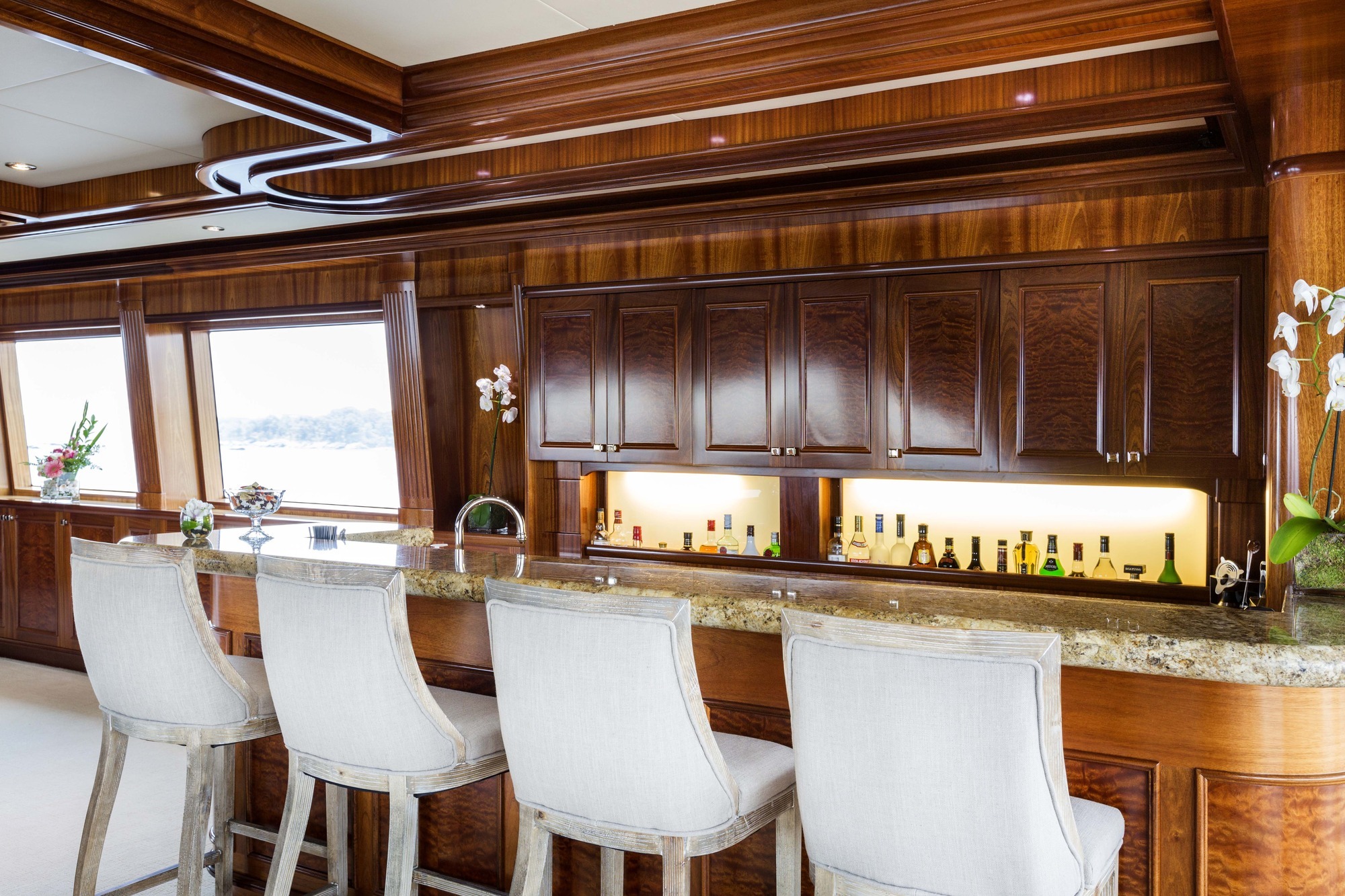 Tenders & Toys: 33' Boston Whaler (NEW 2017) 18' (5.7m) RIB with 115 hp Yamaha (2) SeaDoo Spark Wave runners (2) SeaBobs (2) Paddleboards (2) Wakeboards (men and women) (2) Kayaks - one person each Water skis Floating trampoline Dive compressor Snorkel gear Towable Toys Audio Visual Equipment and Deck Facilities: All new AV equipment.SONAS music system and Apple TV throughout the vessel. Every cabin has a TV, including, aft deck, upper aft deck, sky lounge and salon.