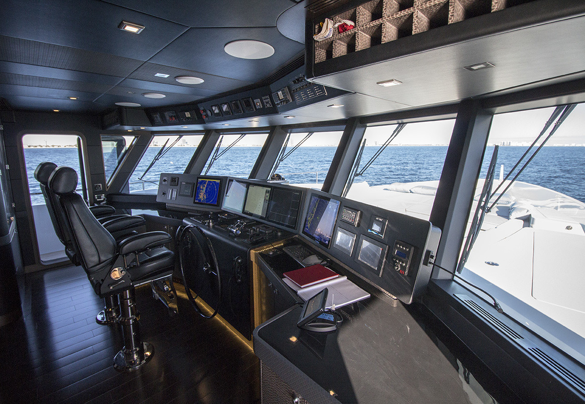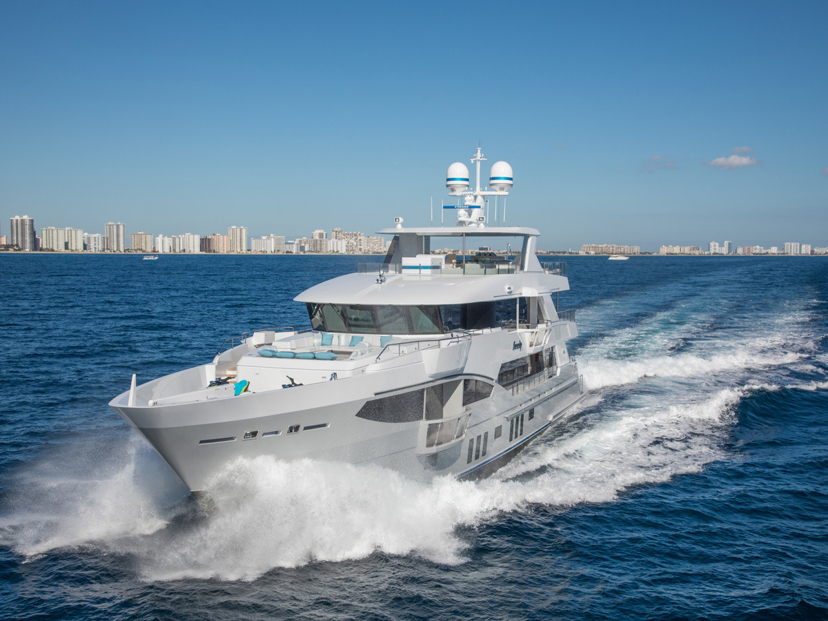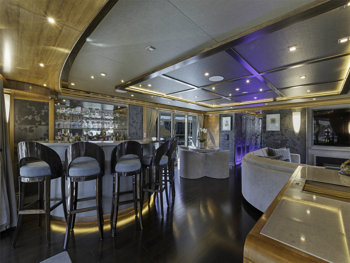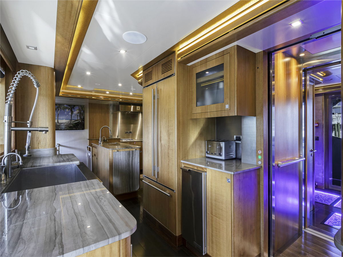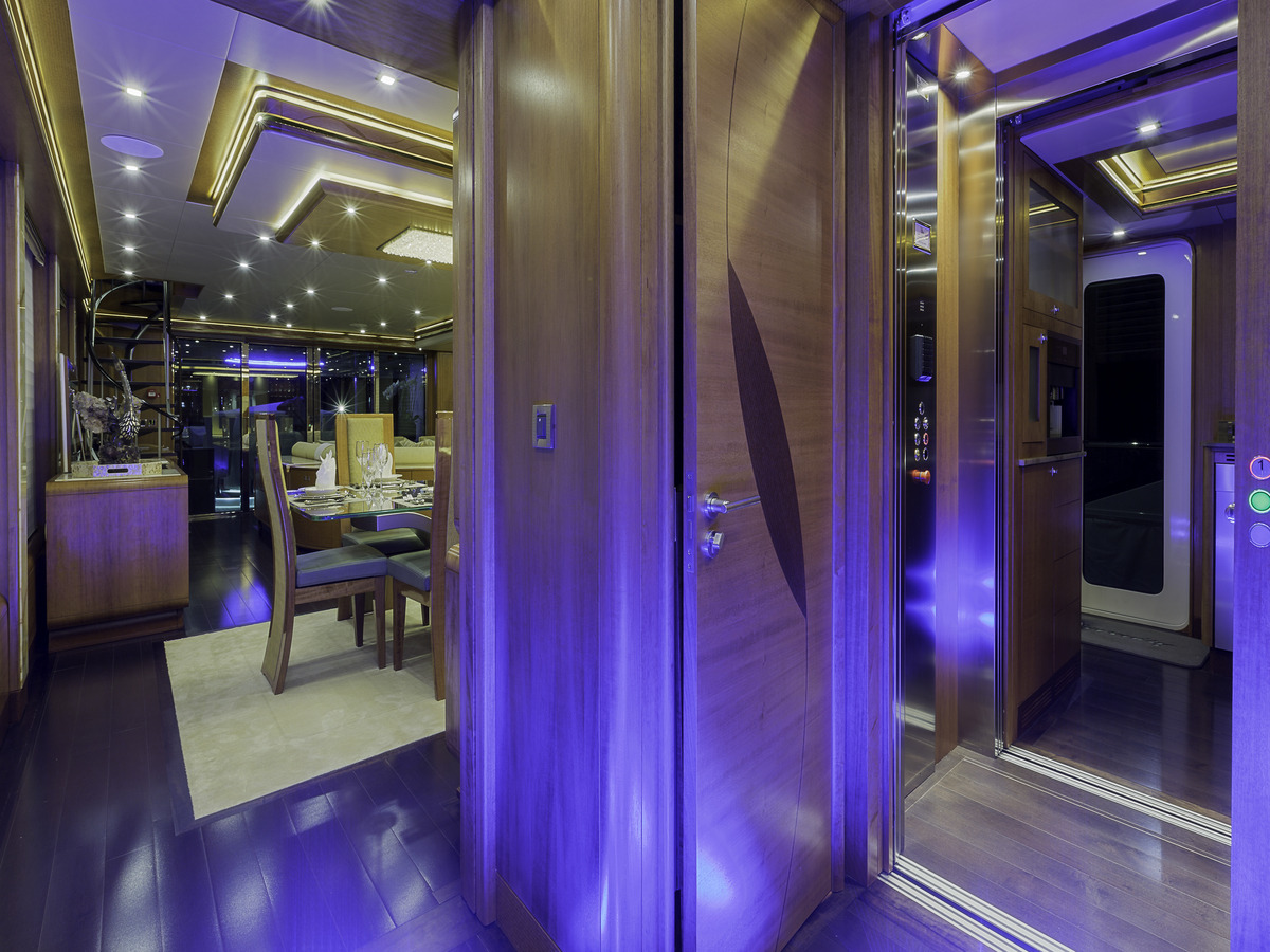 Serenity was created by Evan K. Marshall (EKM) design for charter or private use. She is a spectacular Tri-Deck Motor Yacht, the latest in EKM design. The systems are top brand US purchased for good service. Her fit and finish are sure to impress the most discriminating yacht connoisseur. Major highlights include an interior 4-Level elevator, floor to ceiling windows, multiple balconies (Salon, Master, and Skylounge), light box flooring, backlit onyx, and multiple entertaining spaces and private areas for 12 guests. A spectacular waterfall jacuzzi on the Flybridge and wading pool with backlit skylights showing through the ceiling of the 01 deck are designs unique to Serenity. Garage/Beach with exclusive Z-Lift Sytem that creates a perfect underwater beach allowing easier egress from the water for divers or swimmers. It may double as a passerelle or be conveniently stored creating a regular swim platform.