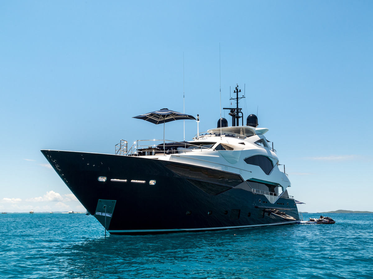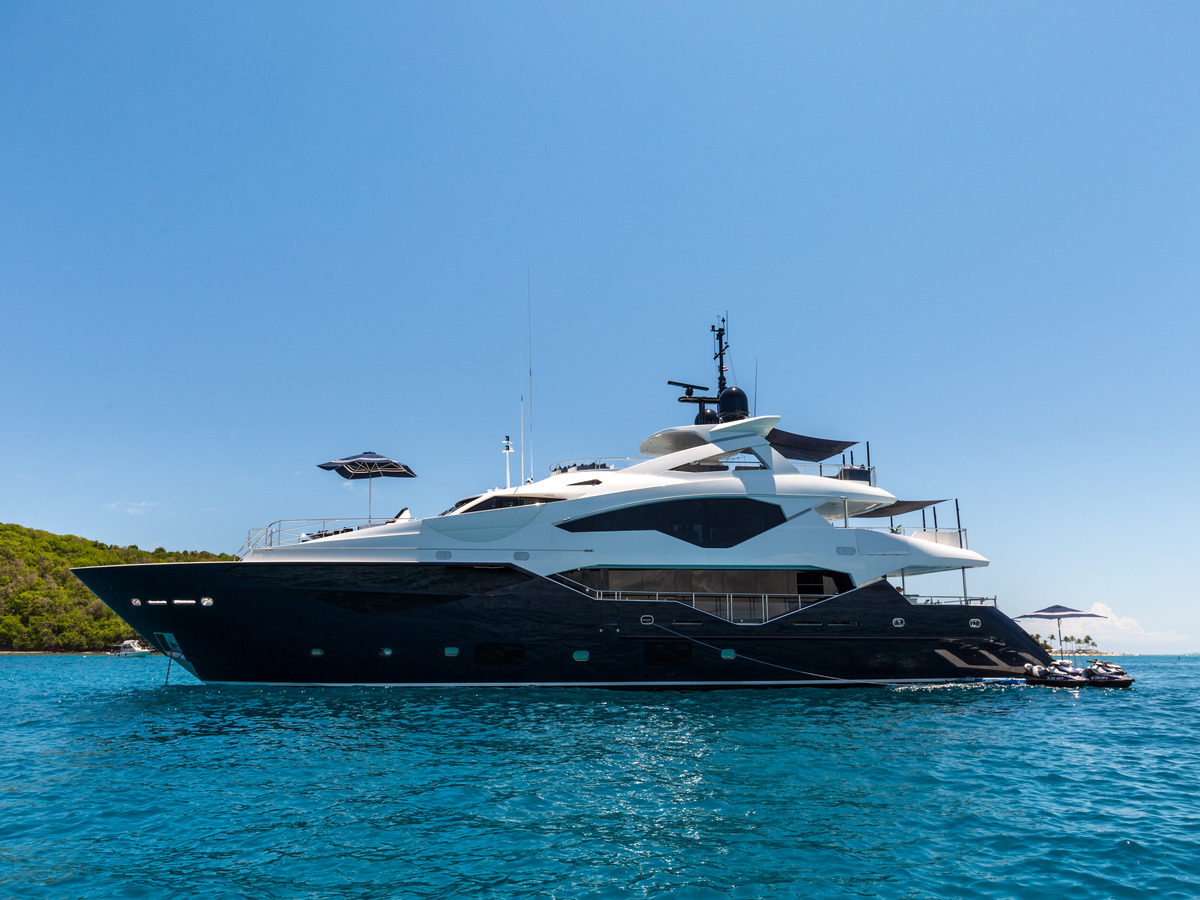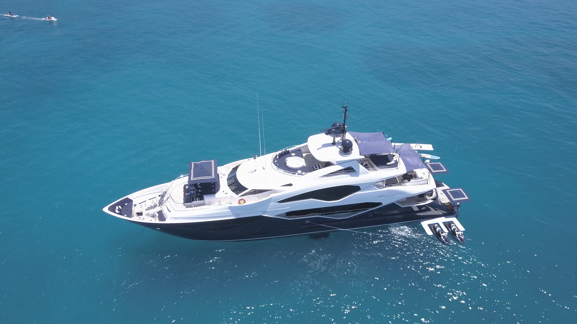 Built in 2016 by Sunseeker, the 131-foot (39.93m) charter yacht TAKE 5 is seductive, elegant and luxury at its finest. TAKE 5 features three spacious decks for guests to enjoy. Outside her aft deck, skylounge deck and sundeck offer guest a variety of dining options, lounge areas and sunpads to soak up the sun. Her main salon and skylounge are elegant luxury at its finest with glamorous décor, ample lounge areas and massive windows that offer charter guests stunning views of their charter destination. Charter yacht TAKE 5 accommodates up to 12 guests in five stylishly seductive staterooms. Her 900-square-foot master stateroom is forward on the main deck and provides a luxurious private oasis featuring a walk-around king bed and en-suite with a large European rainfall shower and dual sinks. TAKE 5 is a wonderful charter yacht for families as below deck she has two queen staterooms and the two twin-bed staterooms each with a Pullman. Guest staterooms are exquisitely decorated and positioned at water level offering charter guests tranquil views. Each stateroom is accompanied with a private en-suite bathroom that offers Bulgari “au the bleu” bath products for all guests. TAKE 5 offers numerous toys for guests to enjoy on board and on the water. Her multi-functional beach club houses the water toys and can be converted into a recreational area when all the water toys are out at sea. TAKE 5 has been meticulously maintained to the highest of standards since being built in 2016 and will continue to be kept in pristine condition for years to come with the current owner and crew of nine.
